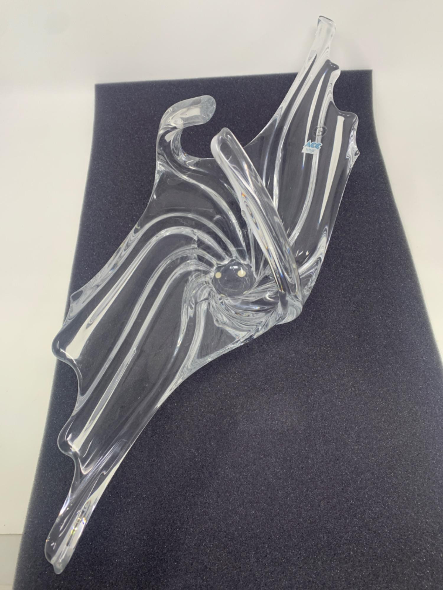 Large Art Crystal Fruit Bowl-ACC Made in France. Hand cut crystal. Matches larger crystal basket. Twisted crystal detail. Heavy and solid crystal.
