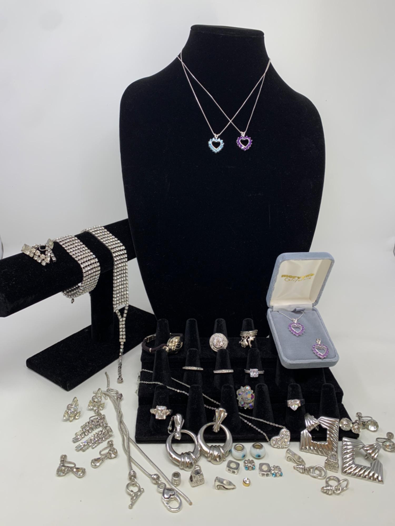 Lot # 80 - Bling Sparkling Gold and Sterling Costume Jewelry-14K Gold Ring Watch