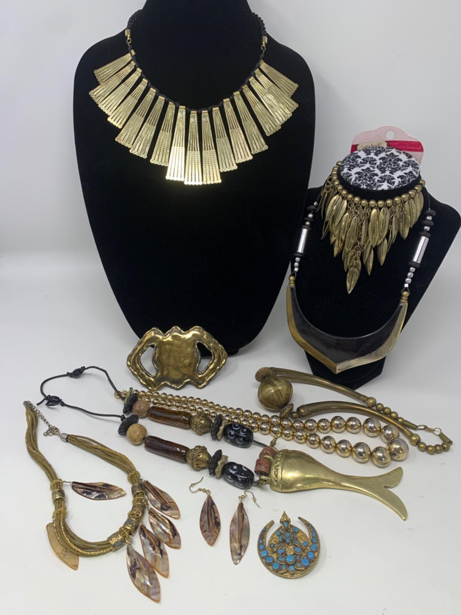 Lot # 112 - Vintage Chunky Brass and Bead Jewelry