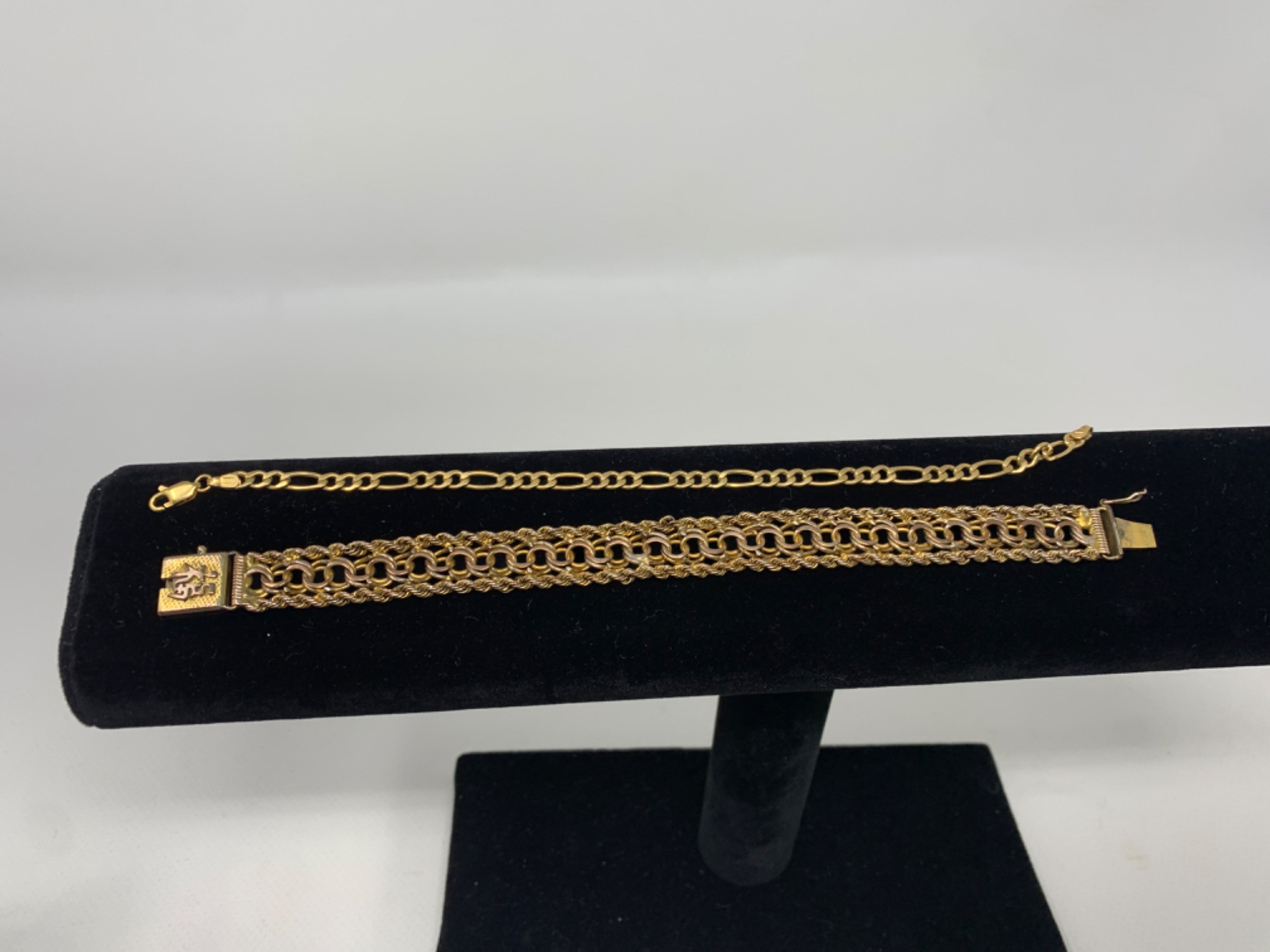 Lot # 10 - 14k Gold Bracelet 3 Grams & Gold Toned Style Bracelet-See Details