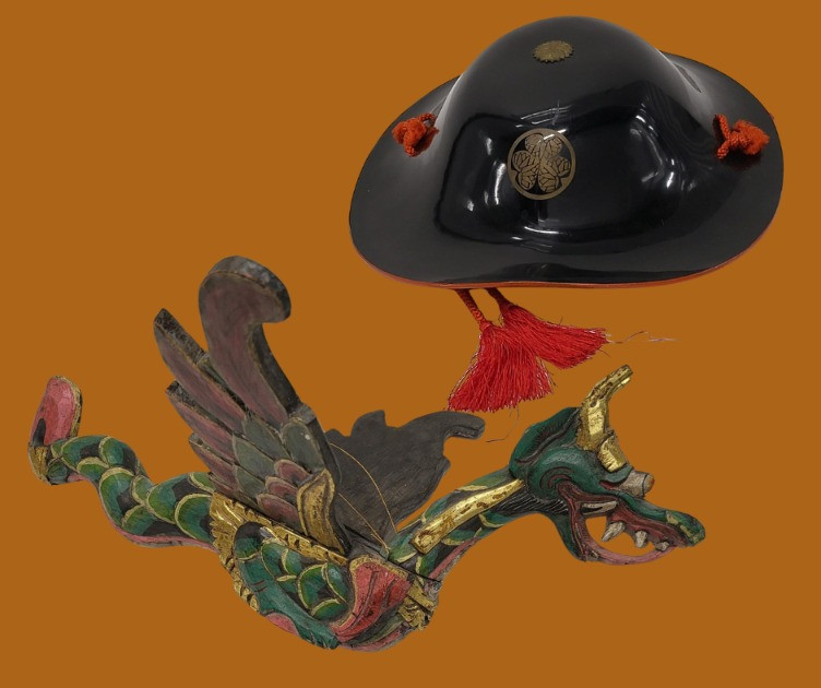Lot # 82 - Asian Decor Jingasa Samari Helmet, Flying Dragon Mobil