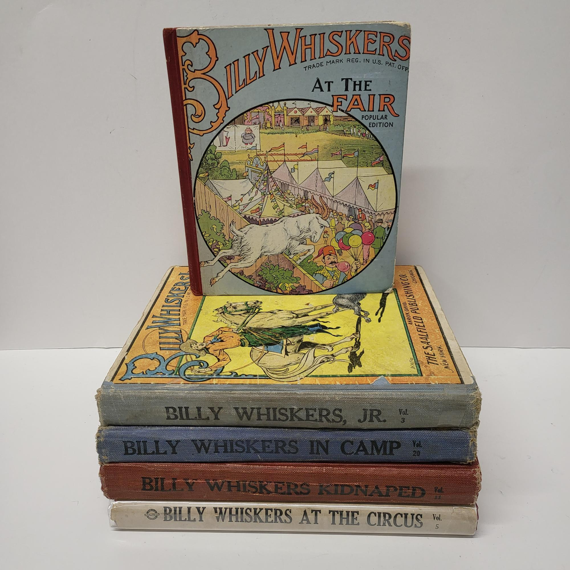 Early 1900's Billy Whiskers hardback books by F.G. Wheeler, Saalfield Publishing Company. Various titles and volumes.