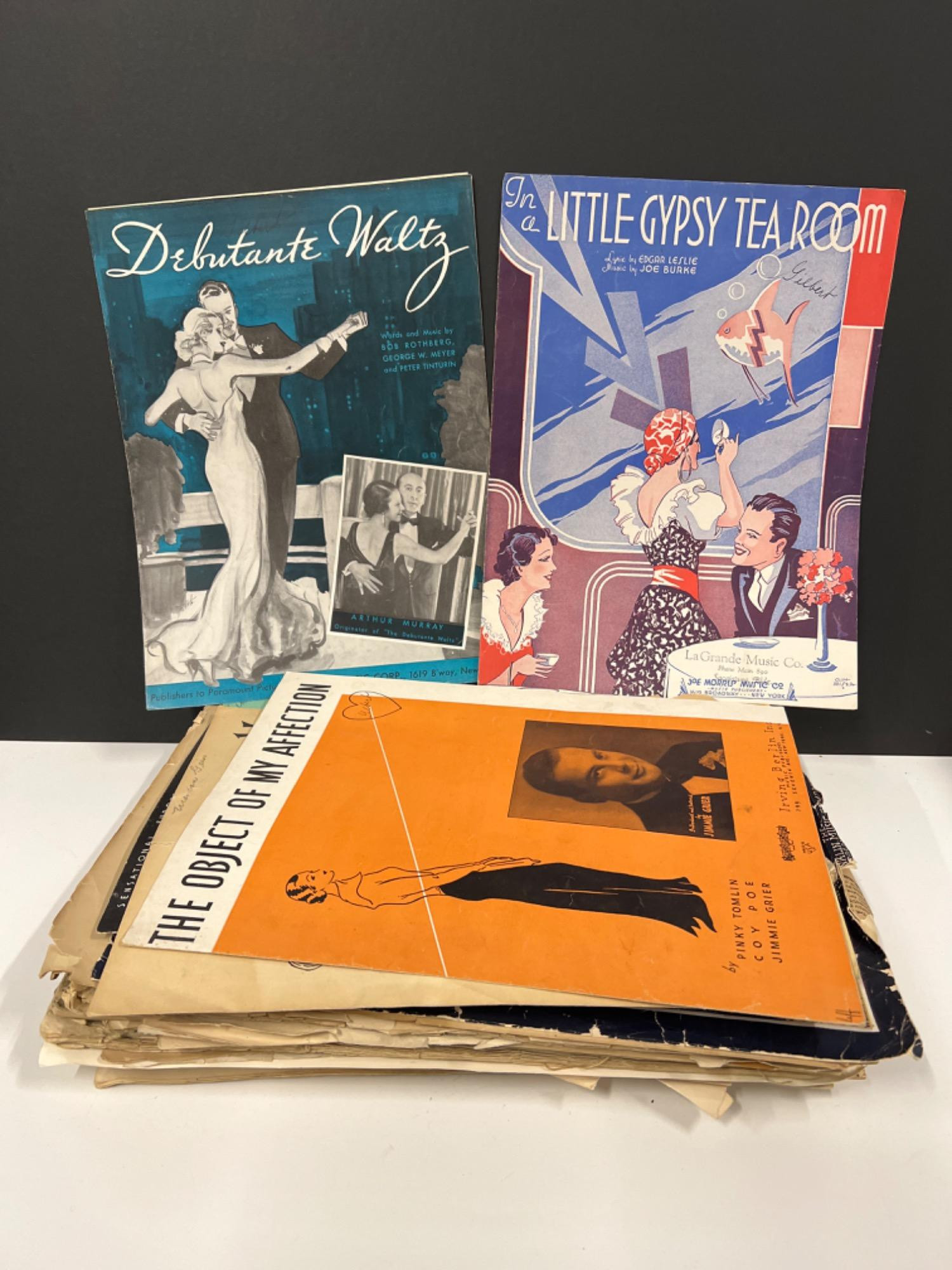 Stack of old sheet music.
