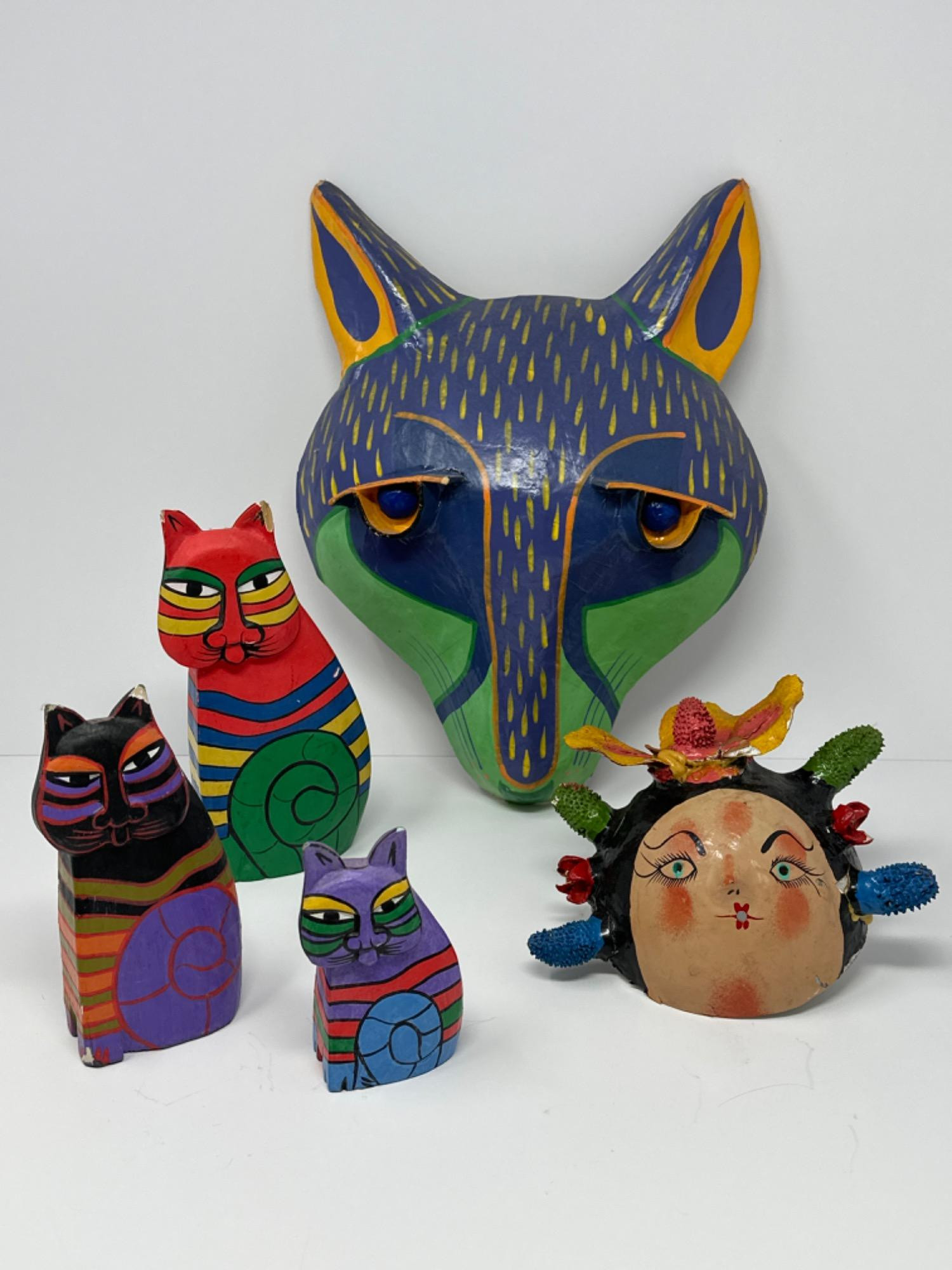 Lot # 6 - Color Me Bright! Fun Vintage Masks & Cat Trio