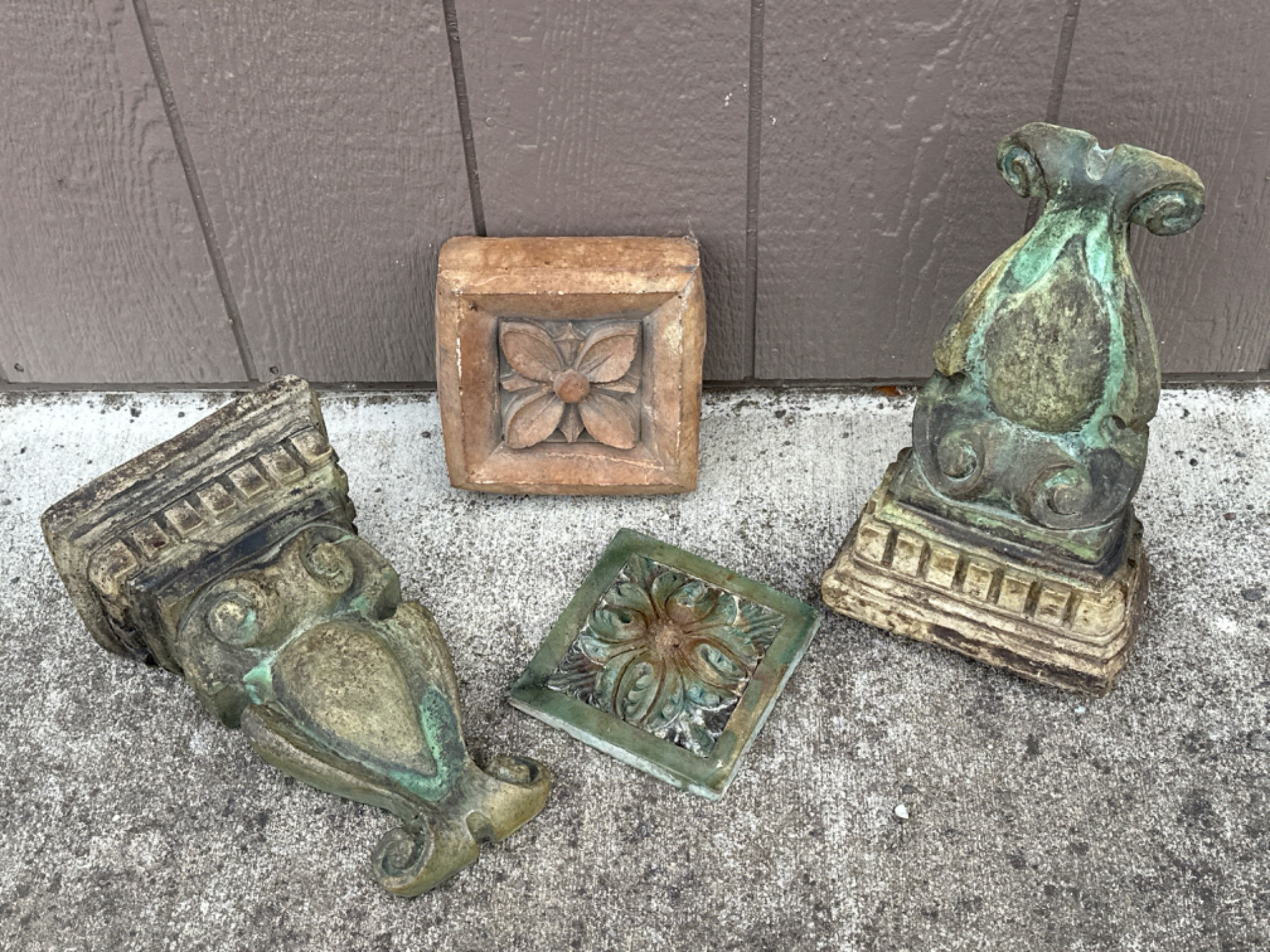 Lot # 19 - Art Deco Cement Garden Corbels & Tiles