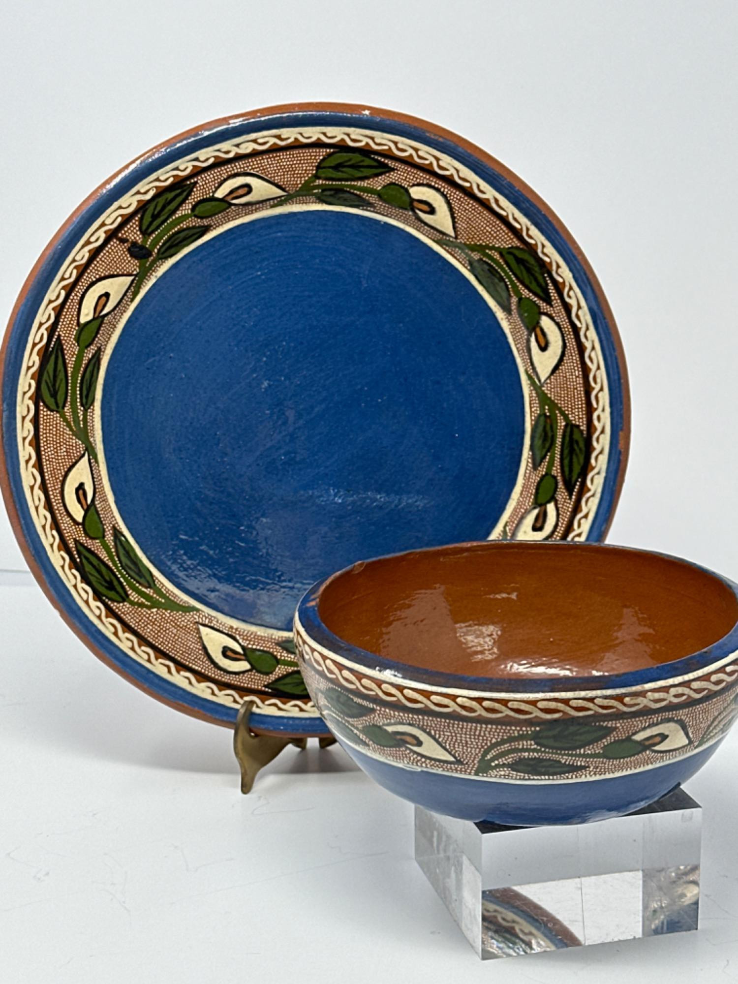 Vintage Glazed Pottery Plate & Bowl *Calla Lily Design