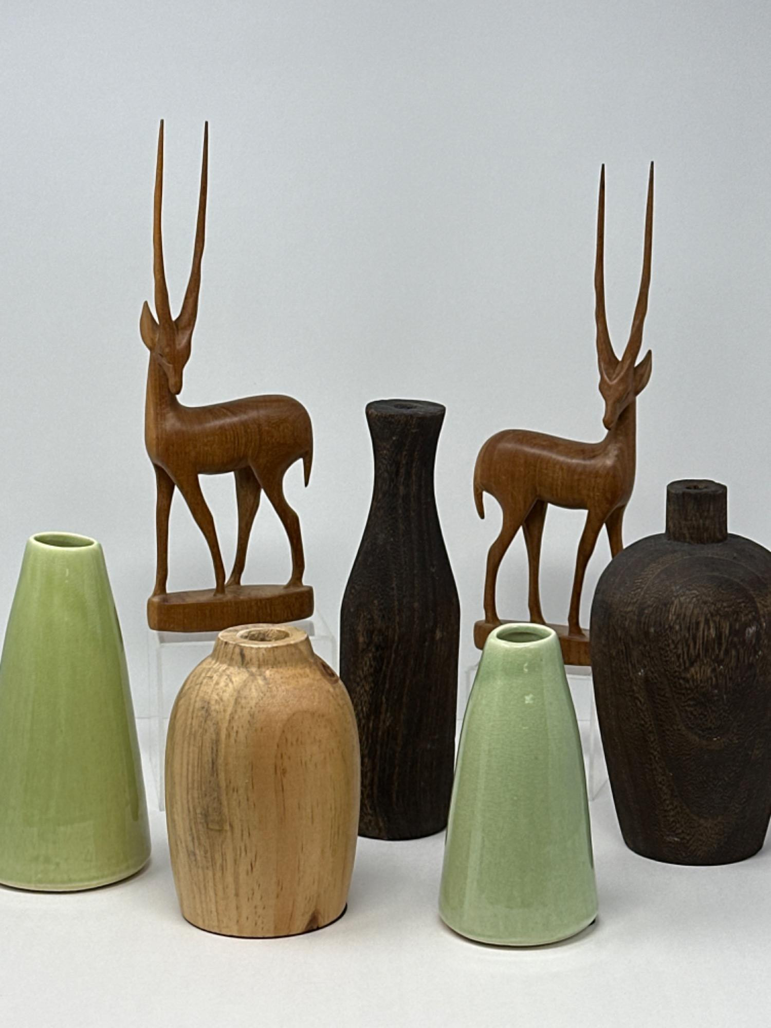 Lot # 71 - Vintage Antelopes- Wood & Ceramic Decor