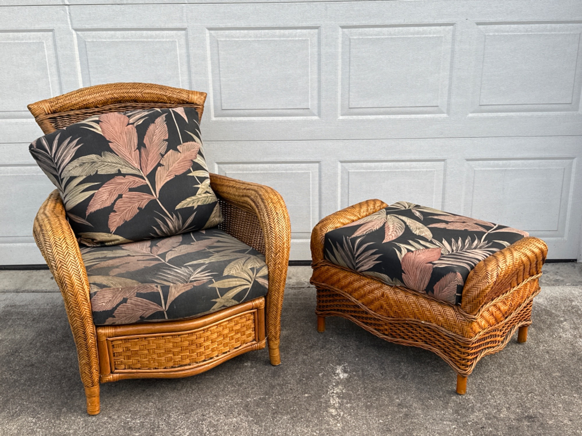 Ratana Vintage Wicker Chair & Ottoman These are well made! Needs a little cleaning/tlc. New or recover cushions.