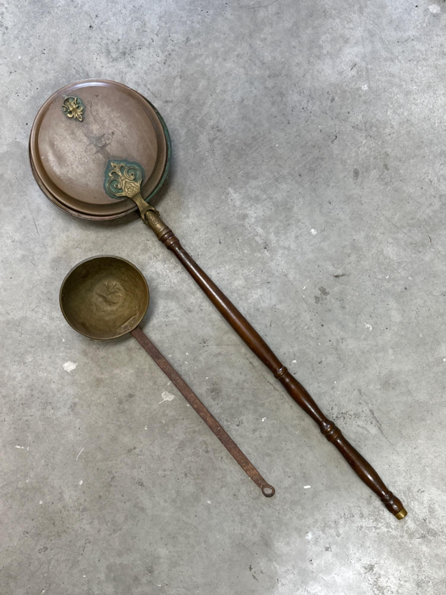 Lot # 109 - Vintage Copper/Brass Bed Warmer & Large Dipper