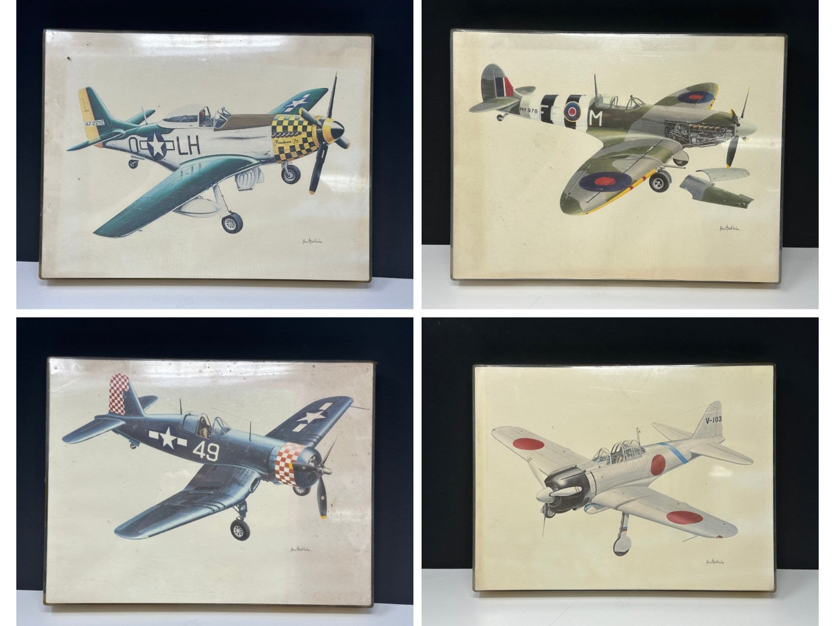Lot # 152 - Vintage Airplane Prints Signed in Acrylic Frames -Set of 4