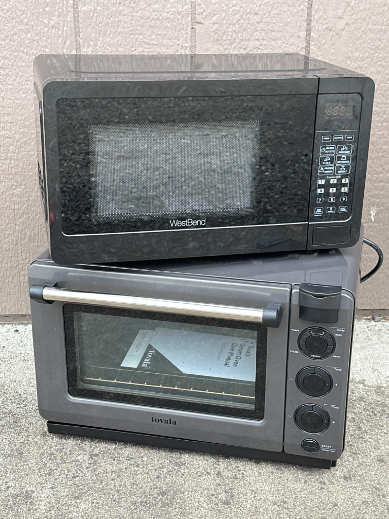 Tovala Toaster Oven- West Bend Microwave- *pardon the gravel lot reflection in the glass.. both items are nearly new, show slight signs of use, as pictured