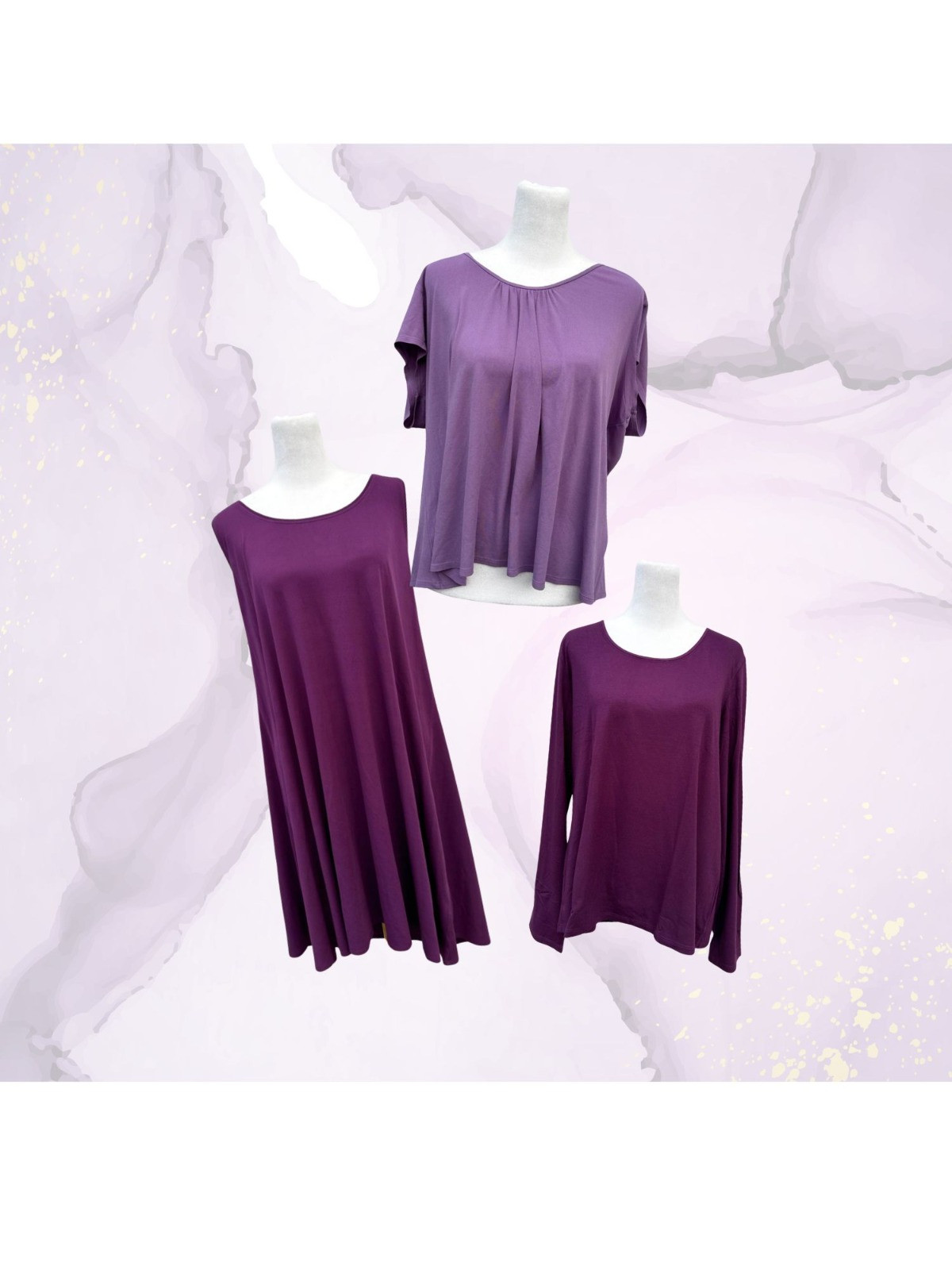 Eileen Fisher Plum Top Trio- L/XL *gently used condition *please note small spot on front of lighter purple tee