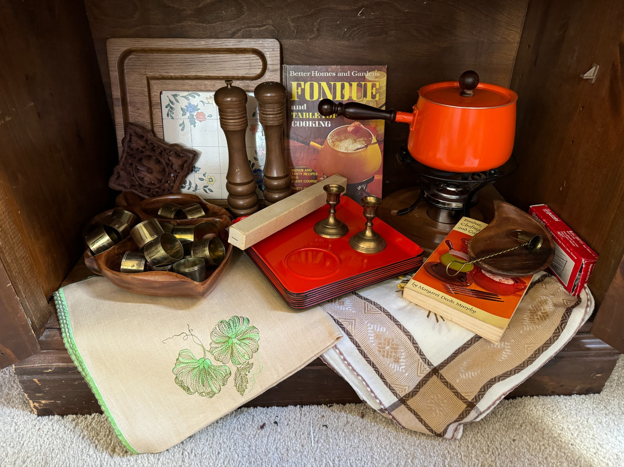 Lot # 41 - Retro Fondue Party - Trays, Recipe Books, & More