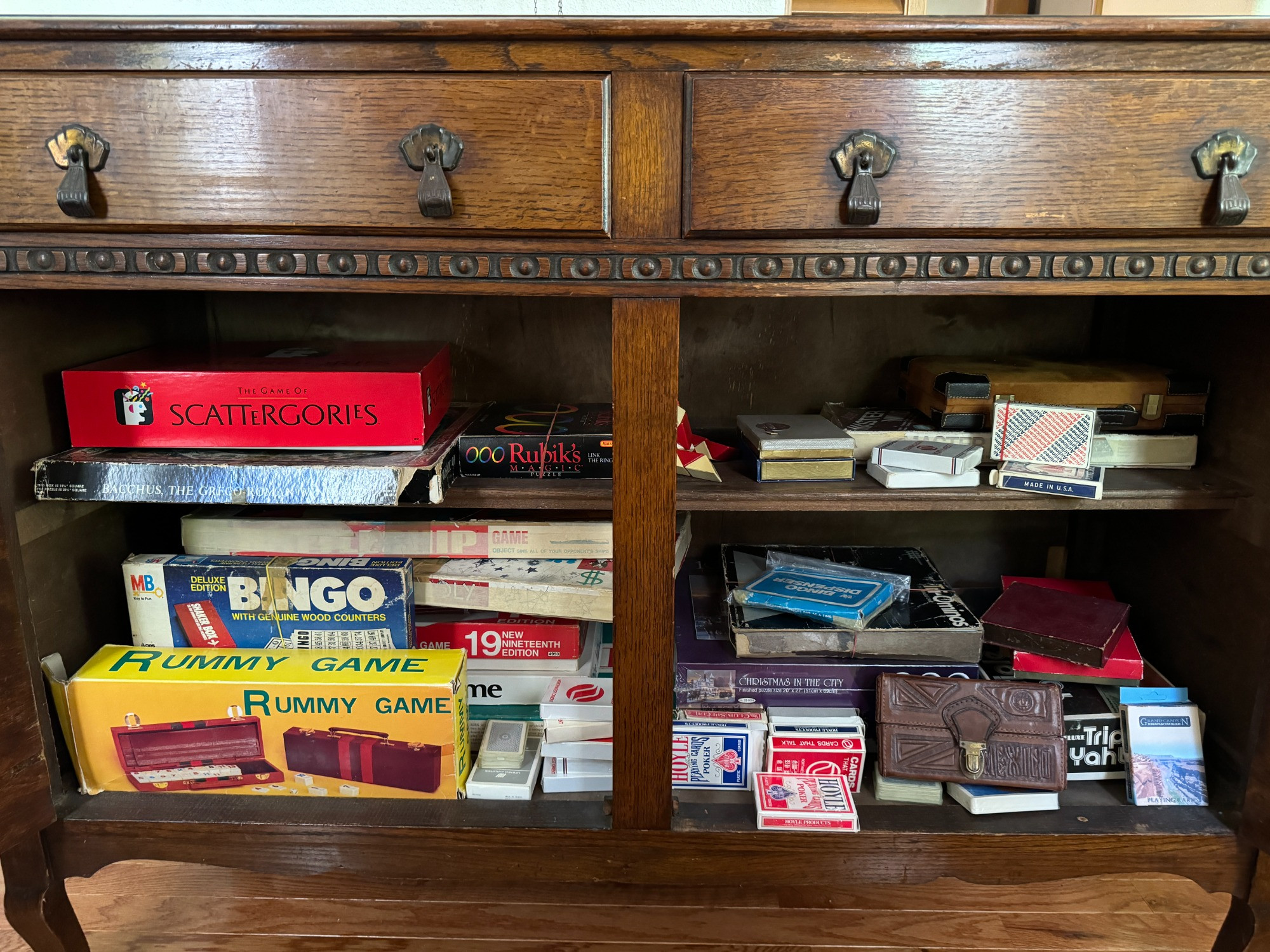Retro Table Games & Playing Cards The vintage mini chess board and spinner dice in leather case are neat finds. New 1000 piece puzzle Unknown completeness of games, puzzles, and cards