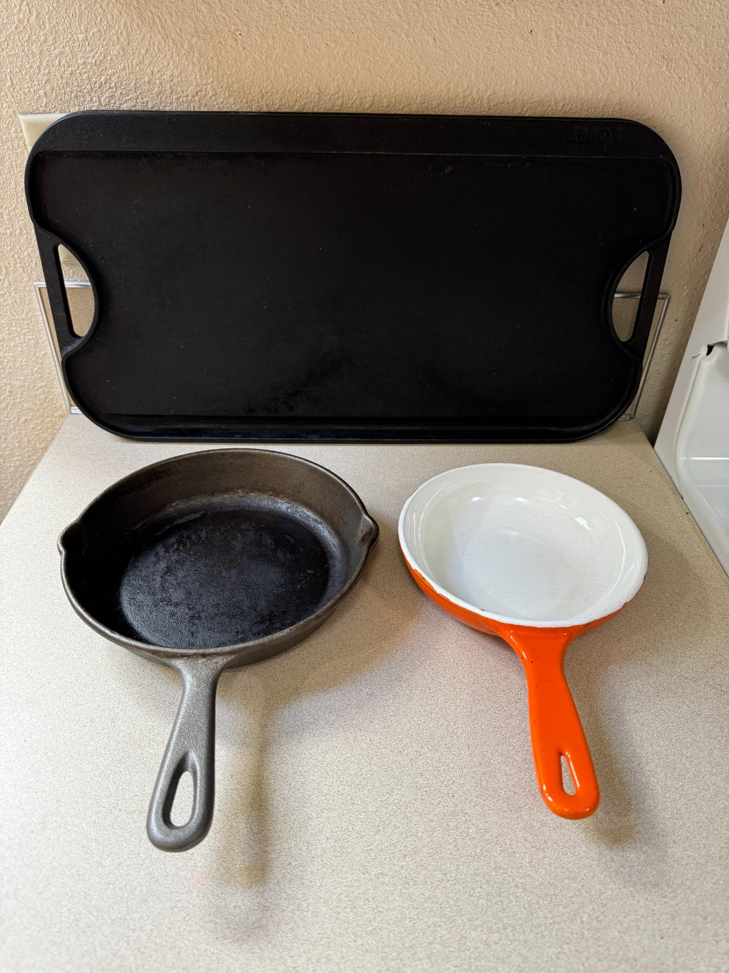Cast Iron Trio - Lodge Griddle - Casron Orange Ombre Skillet 6.75"D Classic cast iron 8"