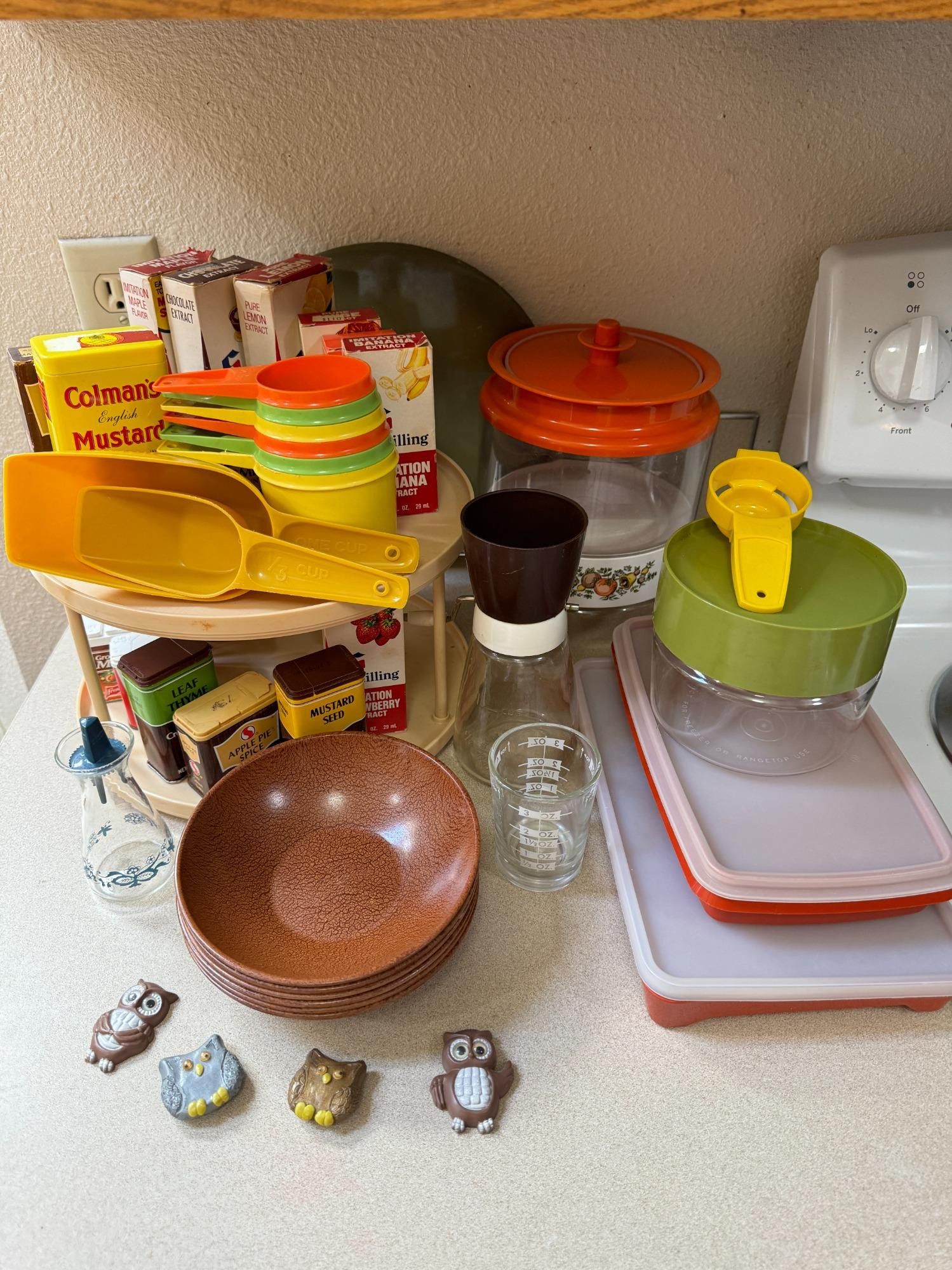Mid Mod Kitchen Tupperware Owl magnets Lustroware scoops SiLite melamine bowls and more!
