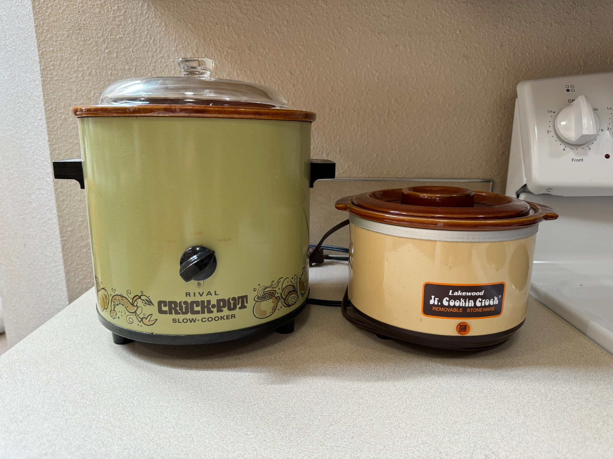Retro Stoneware Crock Pots Avocado Green Rival Crockpot Lakewood Jr cooking crock Both work