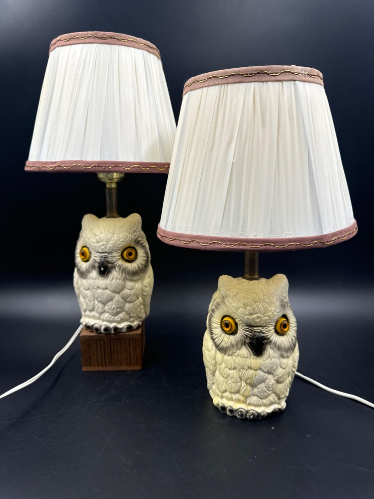 Lot # 149 - Vintage Retro Chalkware Owl Table Lamp Pair w/Shades