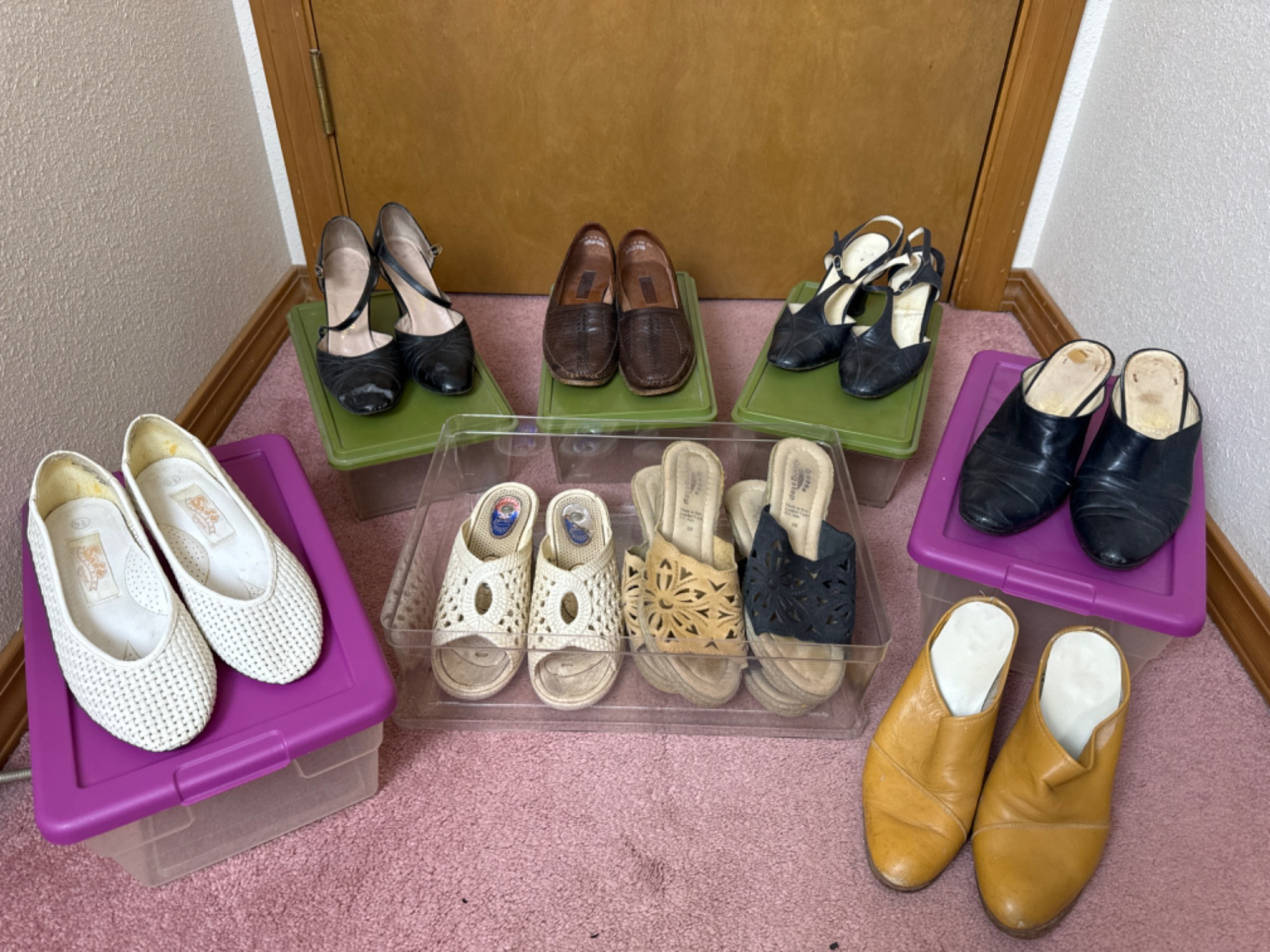 Majority are Leather Vero Cuoio, Otafuku White faux Woven Shoes, GH Bass and Co will need new soles Shoe sizes vary 5-6 Bins are included