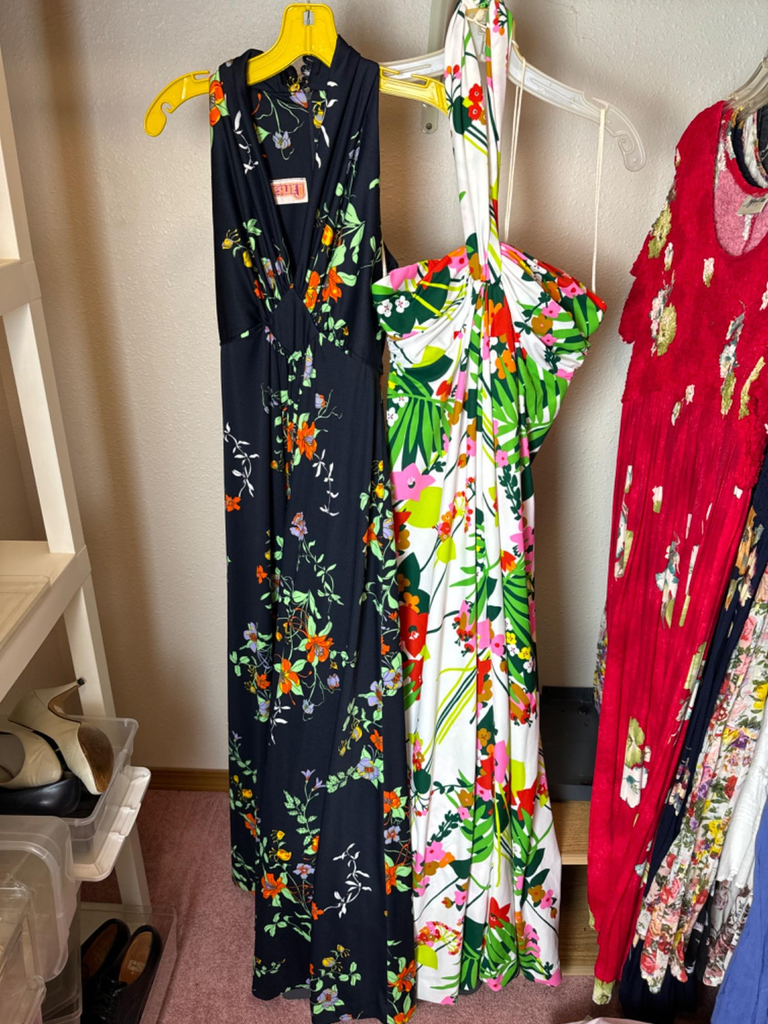 Vintage Black & White Vibrant Floral Maxi Dresses - Leslie J - S/M Both are about a 32-34" bust