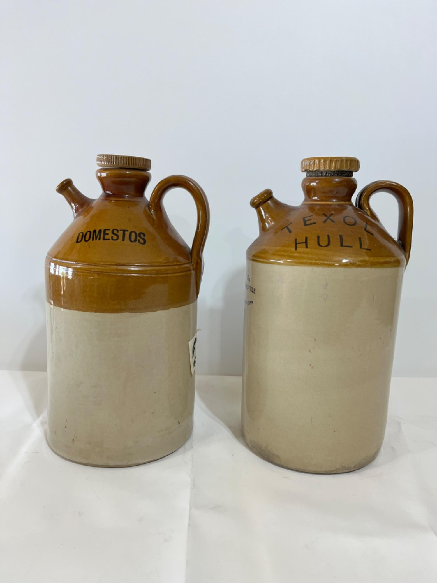 Lot # 68 - Large Antique Stoneware Jars - 1940's Domestos And Texol Hull