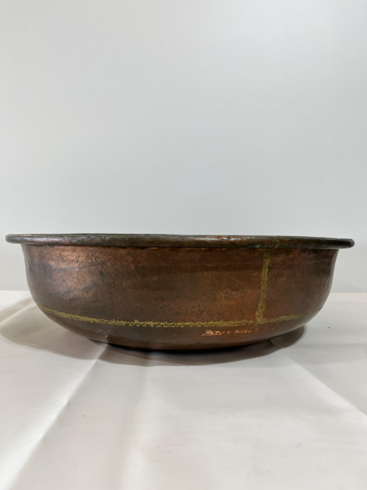 - Large Antique Copper Pot. - 19.75" Diameter, 6" Height - See photos for details.