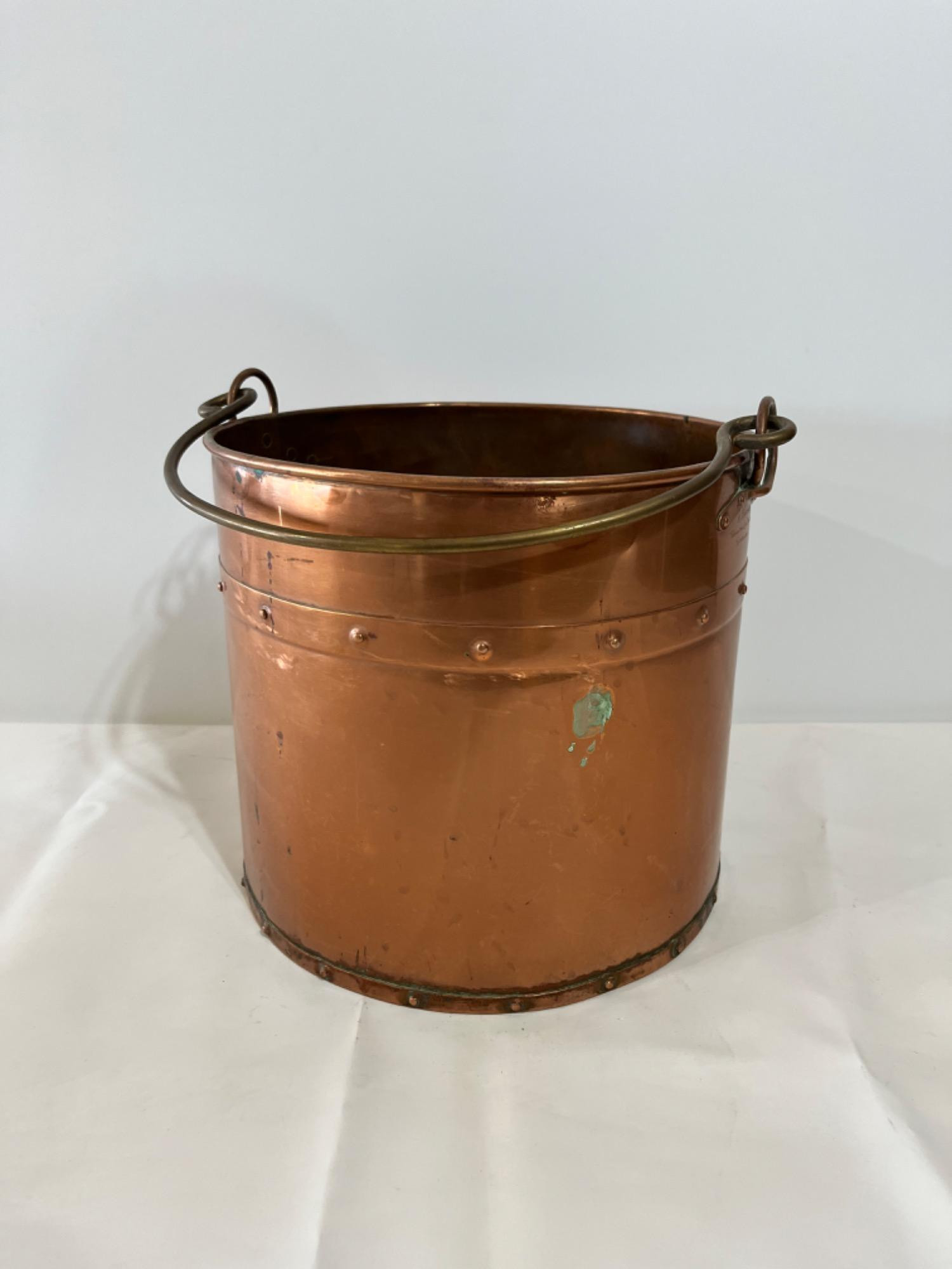 - Large Antique Copper Bucket with functional handle and design. -11" Diameter, 10" Height - See photos for more details.