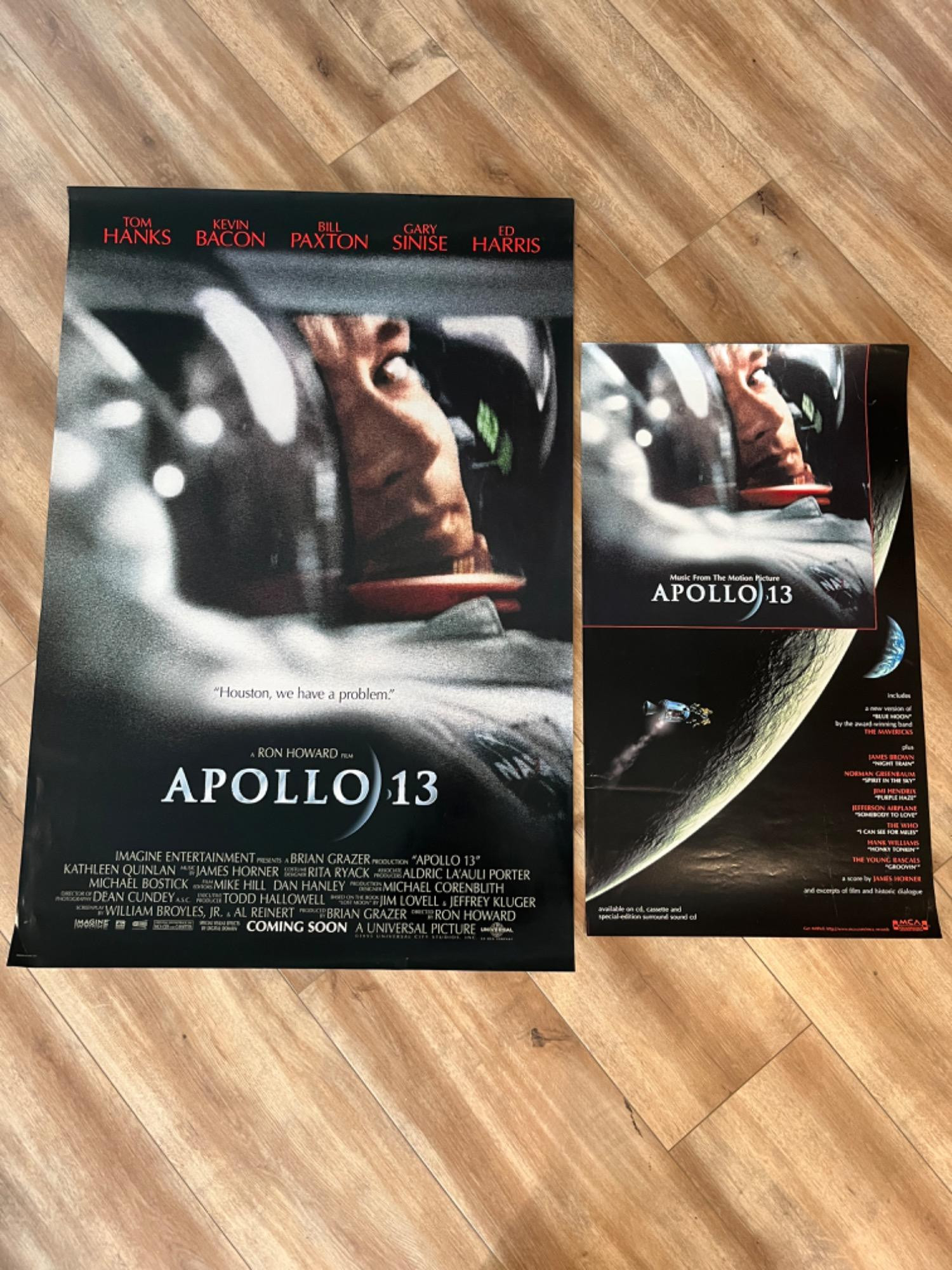 Includes: - Original vintage Apollo 13 movie theater poster. - Original vintage Apollo 13 soundtrack poster.