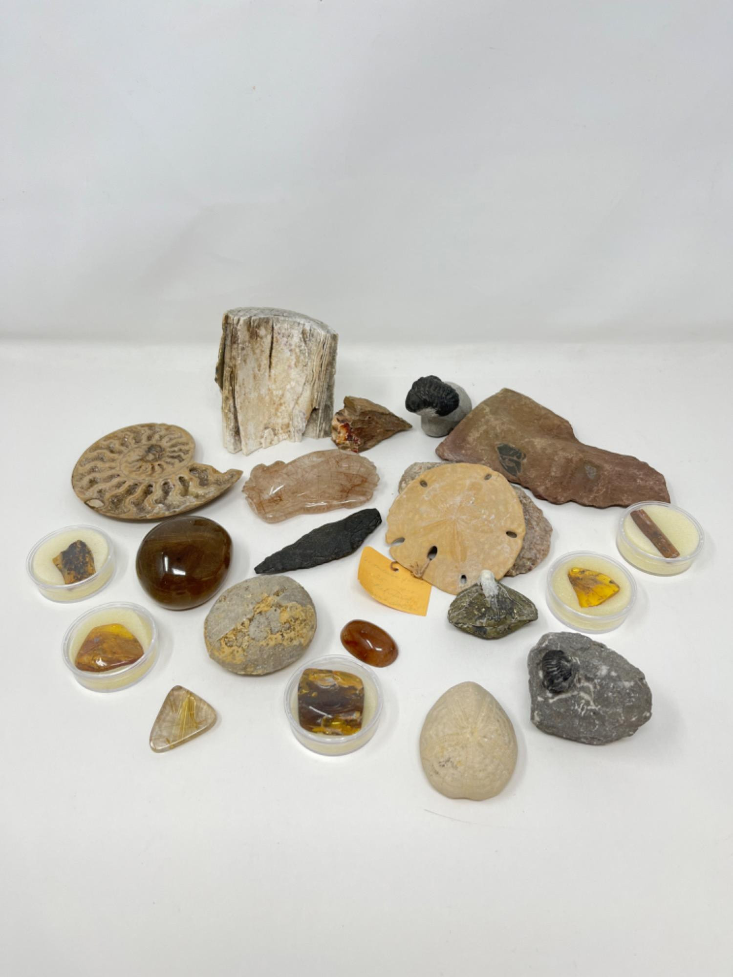 - Various collection of ancient stonework, amber embedded insects, rare fossils, petrified wood, and more!