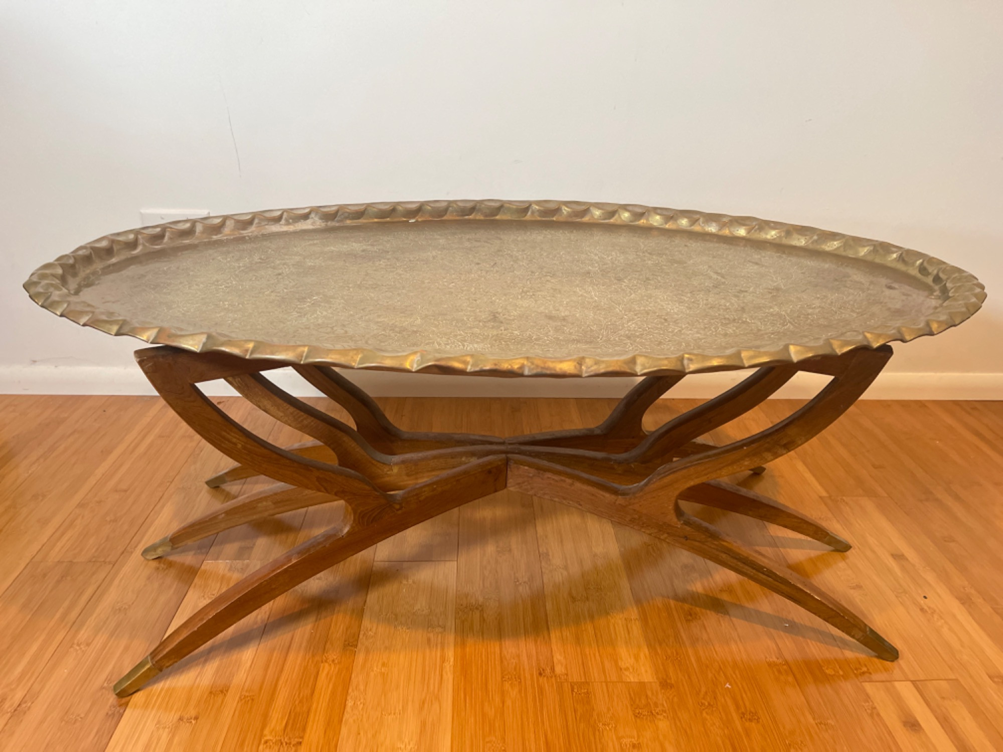Lot # 13 - Vintage Moroccan Style Brass Top Table With Spider Leg Folding Base