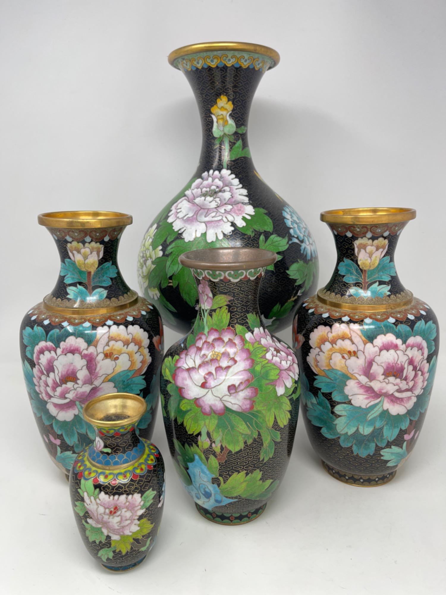 Lot # 27 - Vintage Black Oriental Chinese Peony Themed Cloisonné
