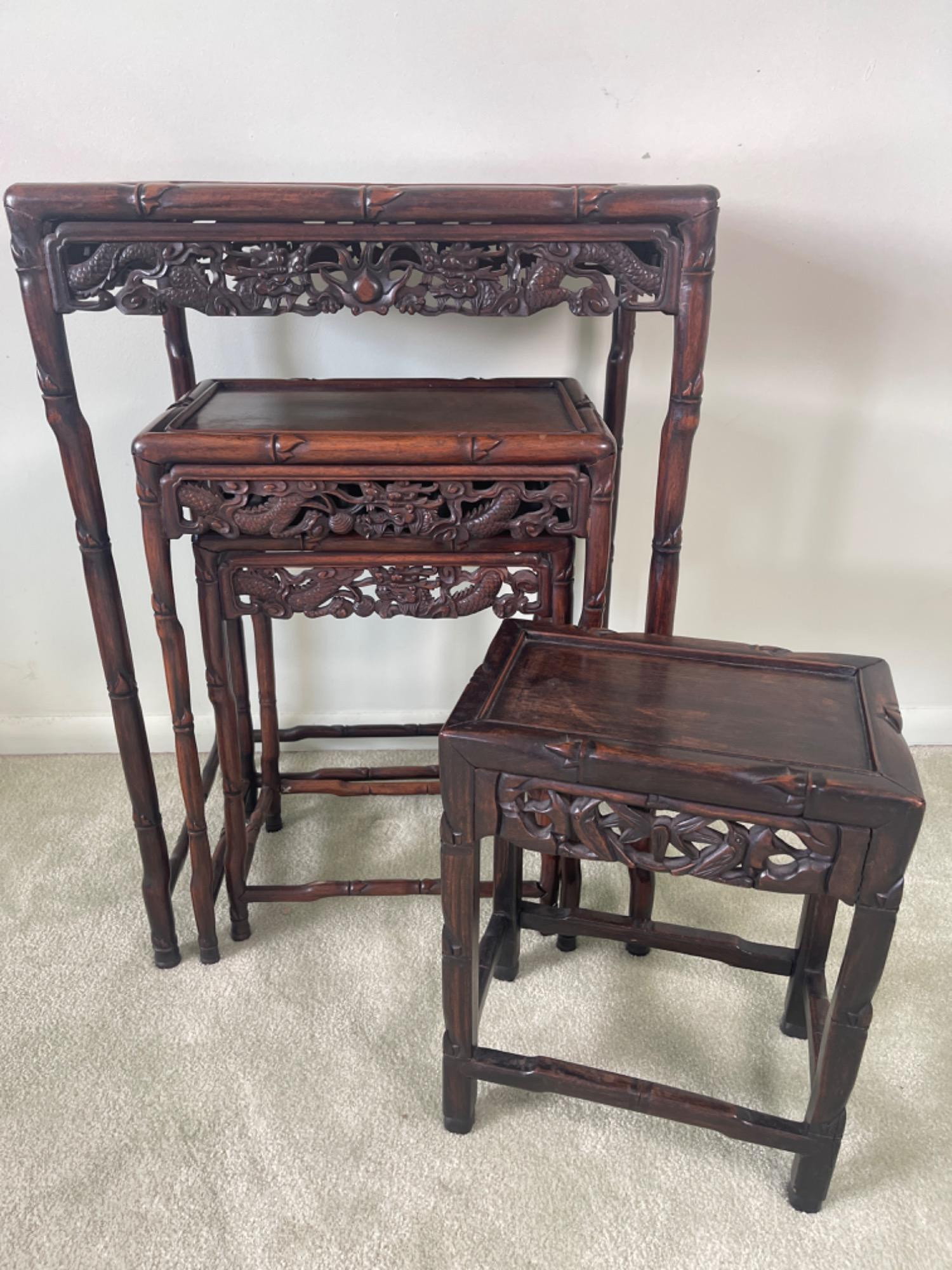 Lot # 41 - Vintage Chinese Rosewood Bamboo Style Nesting Side Tables