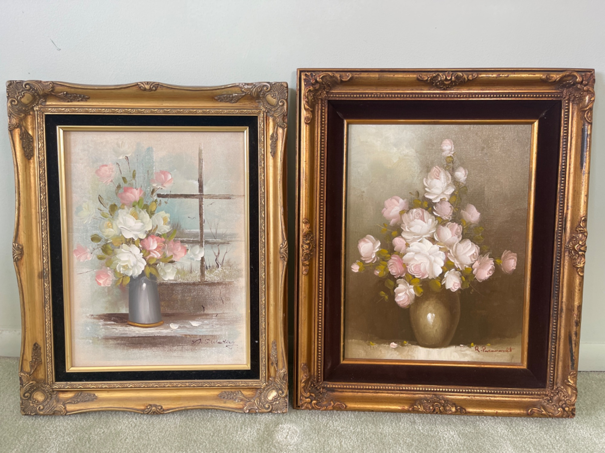 Lot # 52 - (2) Signed Floral Paintings In Ornate Frames - (1)Oil By Roy Pasanault