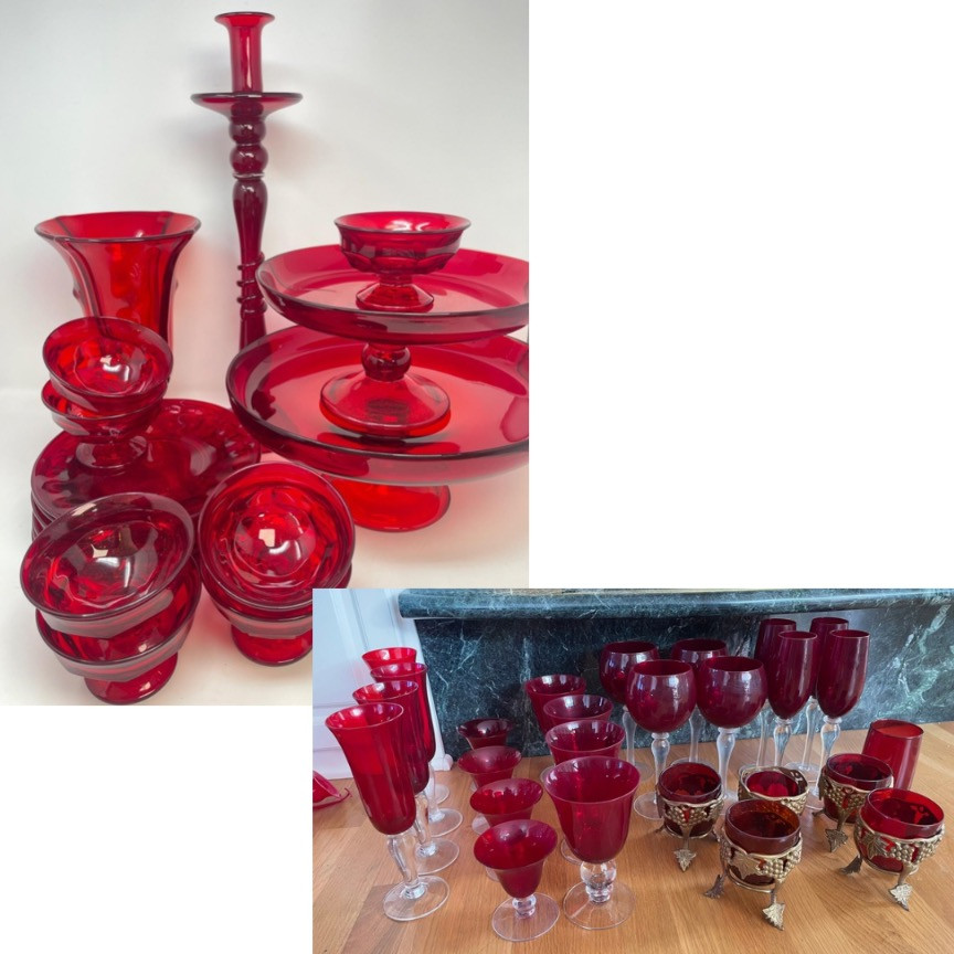 Lot # 62 - Vintage Thick Ruby Red Decor And Dishes - Viking, Two’s Company +