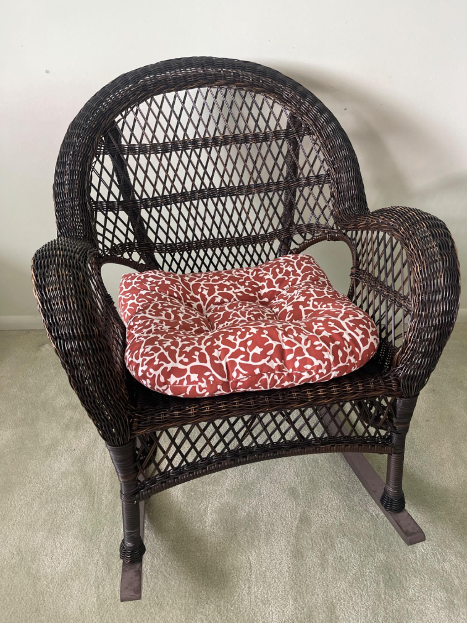 Great condition no fraying of wicker frame. Measurements: 30 inches L x 22 inches W x 36 inches H