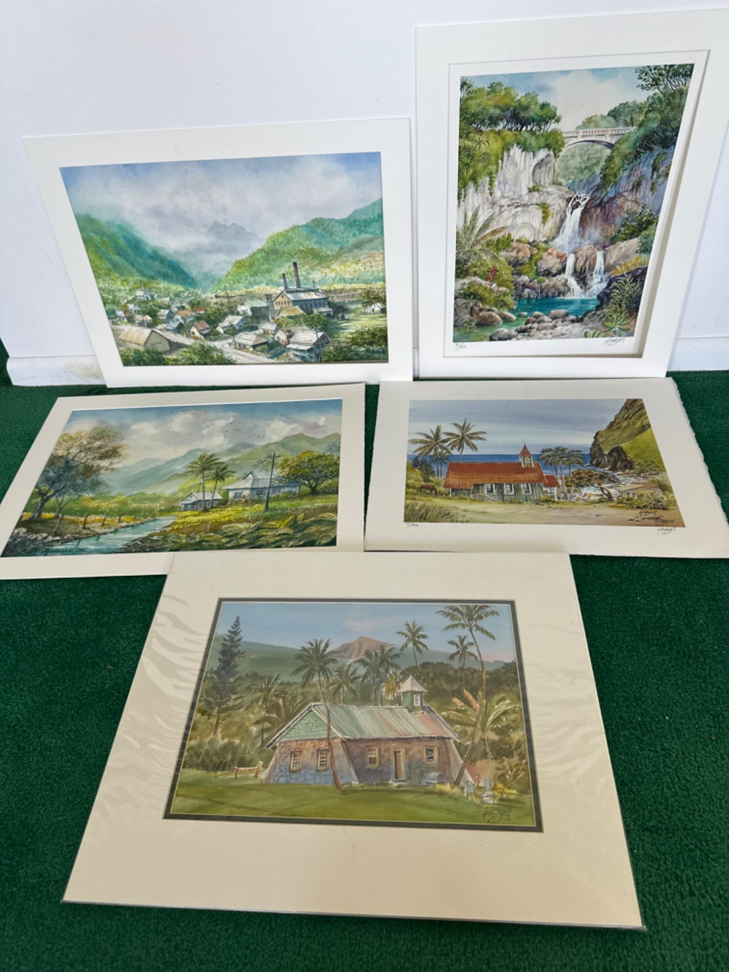 Lot # 120 - (4) Original Hawaiian Watercolors, (1) Print - Lahaina, Maui 12 x 12