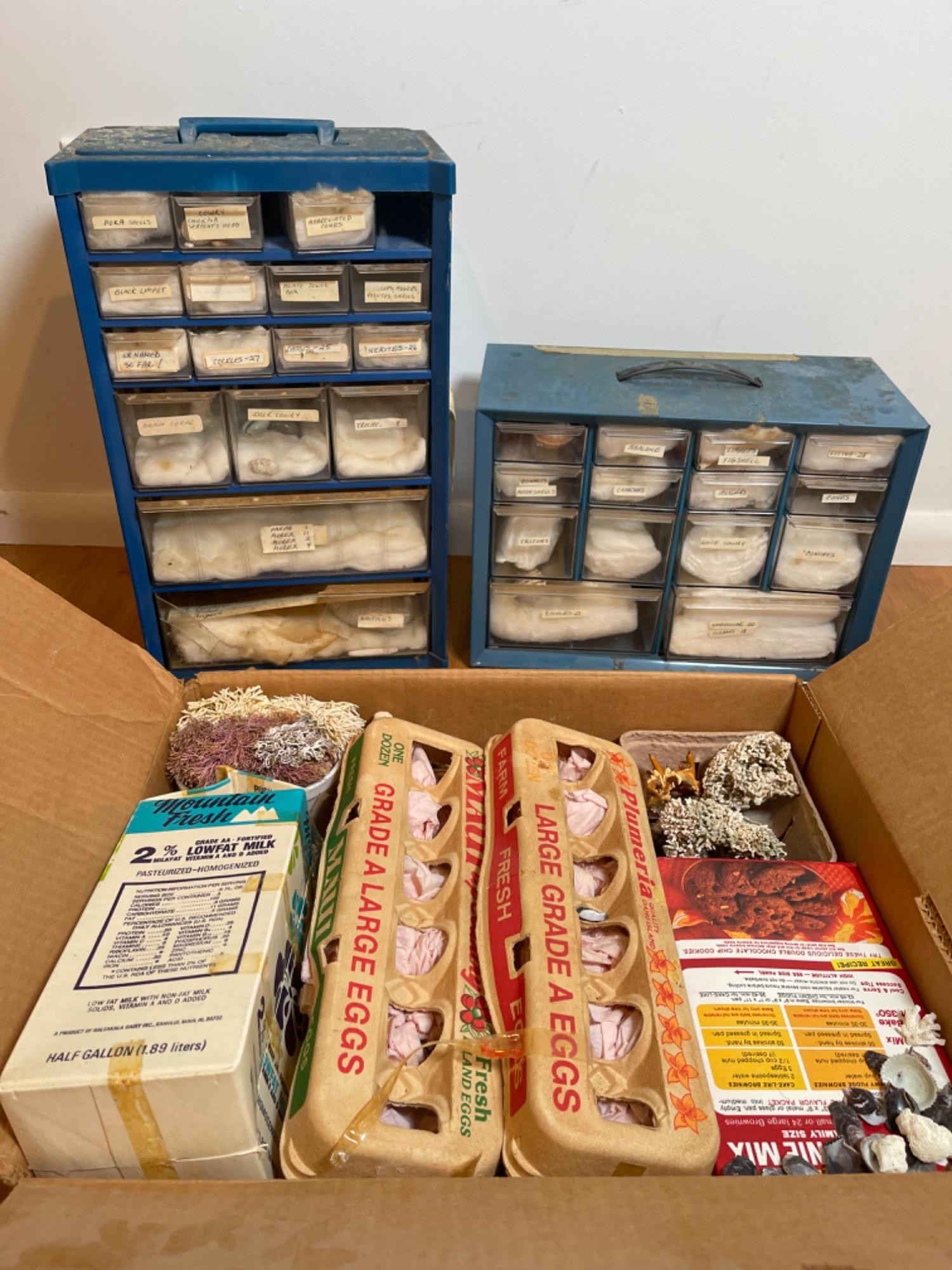 Not all contents are photographed or explored. Collection will need to be moved into different boxes as they are very worn and dirty.