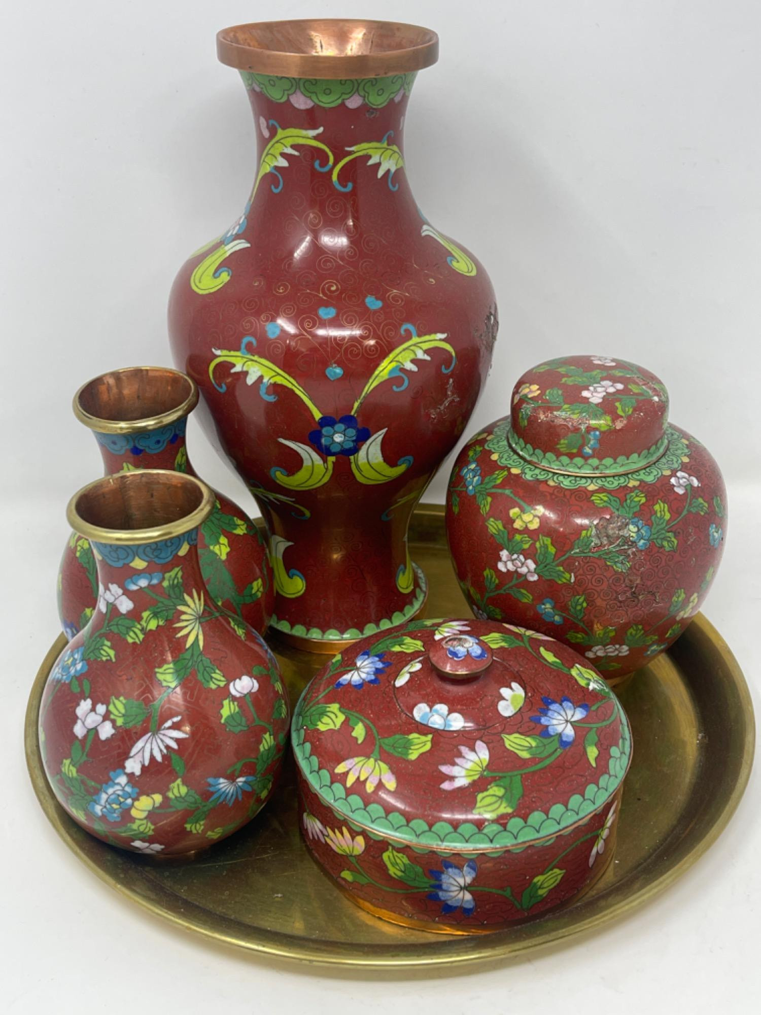 Lot # 169 - Vintage Red Chinese Cloisonné - See Photos For Damages