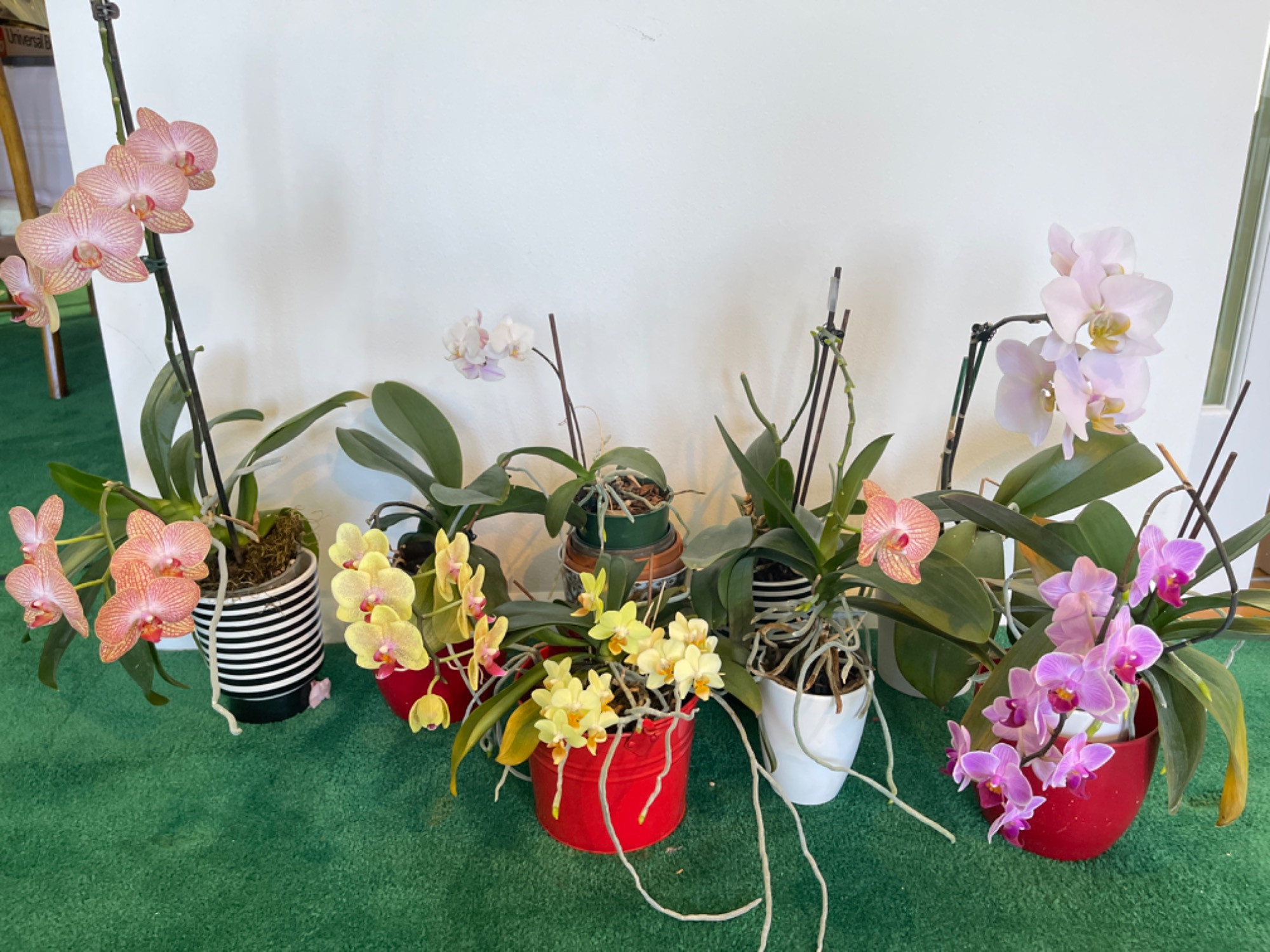 Health of orchids is not known, but they are being watered. Tallest: 24 inches tall