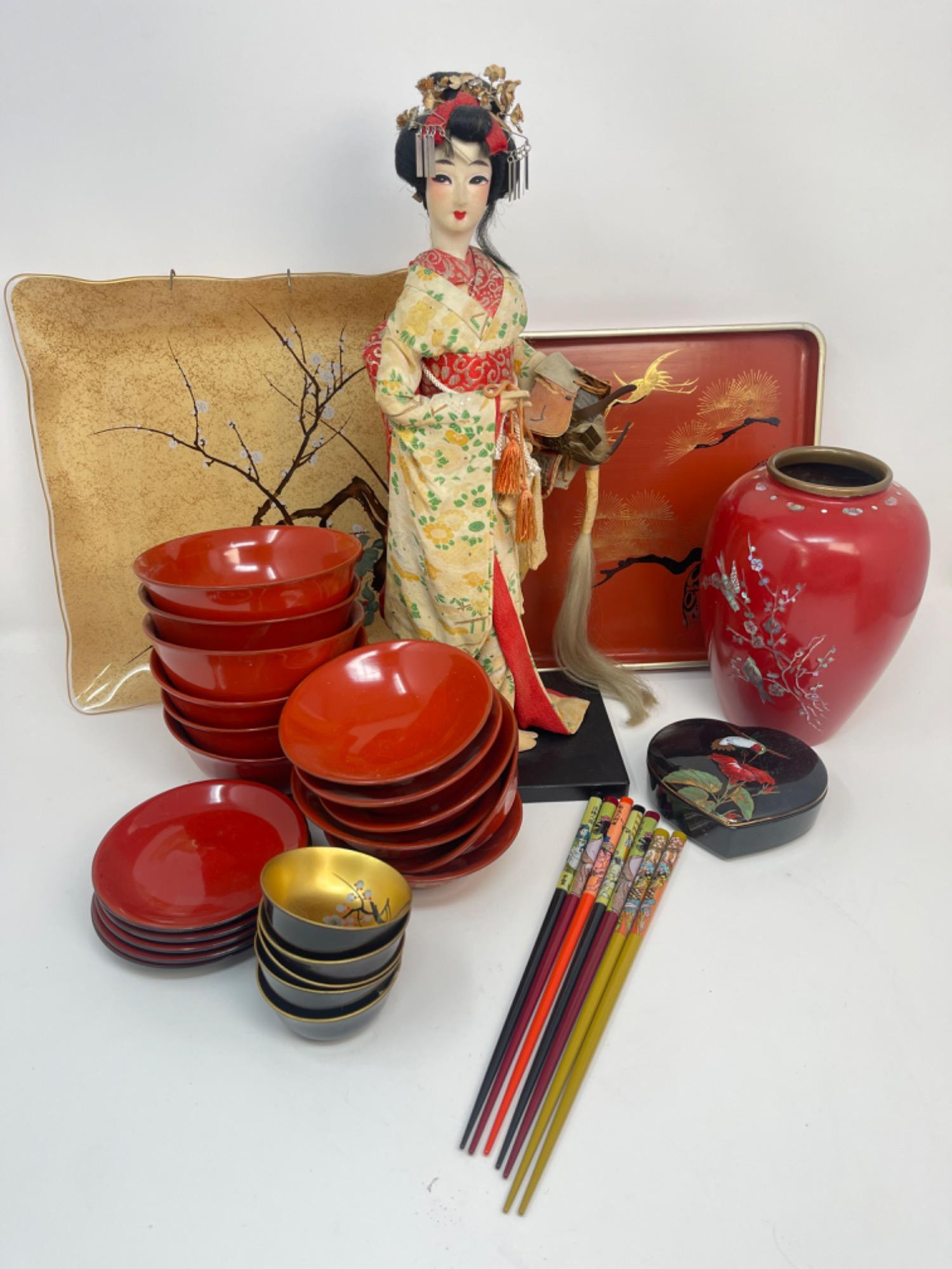 Lot # 194 - Asian Style Decor And Bowls - Geisha Doll +