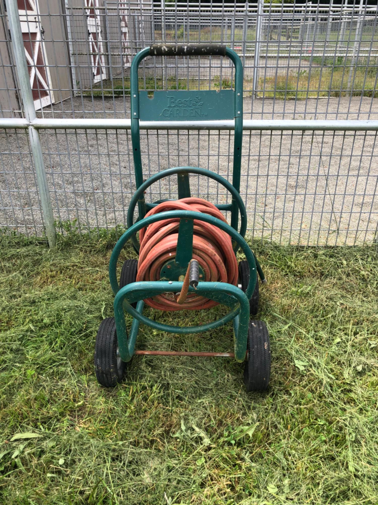 Lot # 215 - Best Garden 300 Ft. x 5/8 Green Metal 4-Wheel Hose Reel - With Hose
