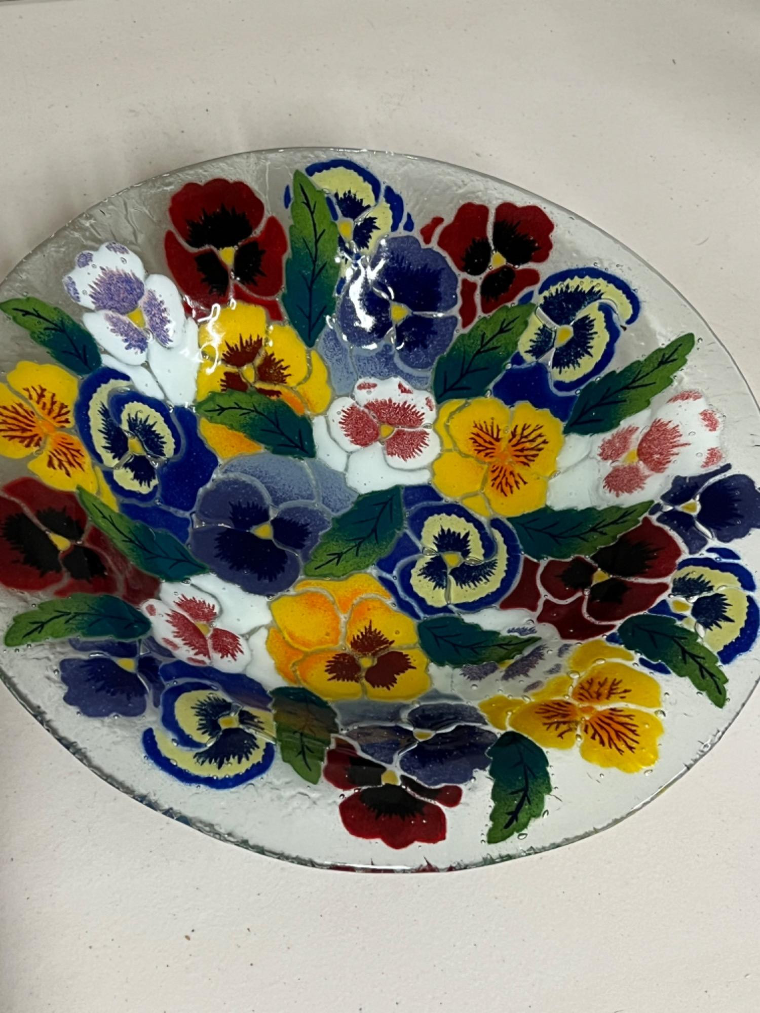 Lot # 214 - Vintage Peggy Karr Fused Art Pansy Glass Bowl