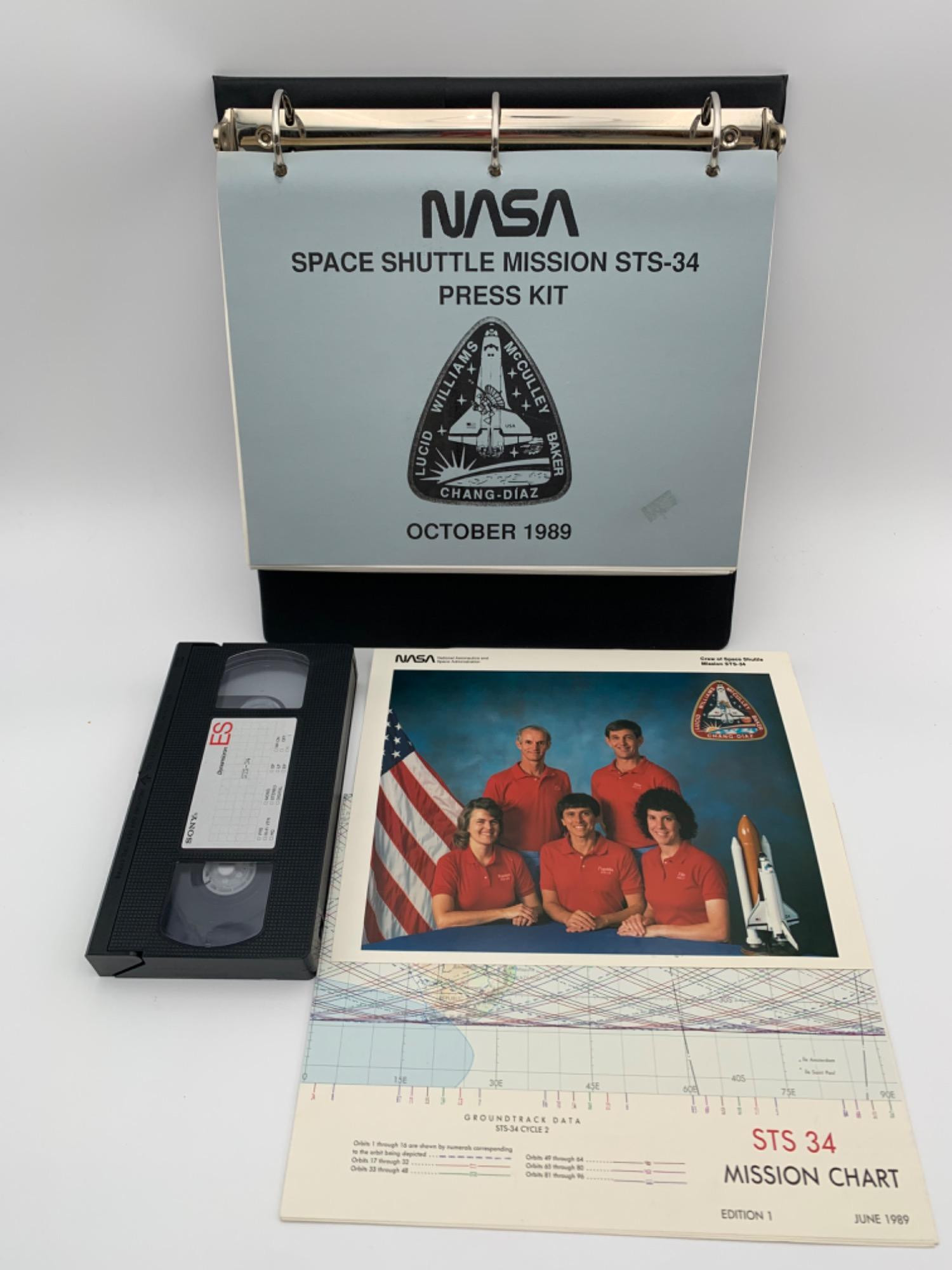 Lot includes: Complete press kit for media coverage of Space Shuttle (STS-34) mission. Printed materials detailing everything from contacts to scientific