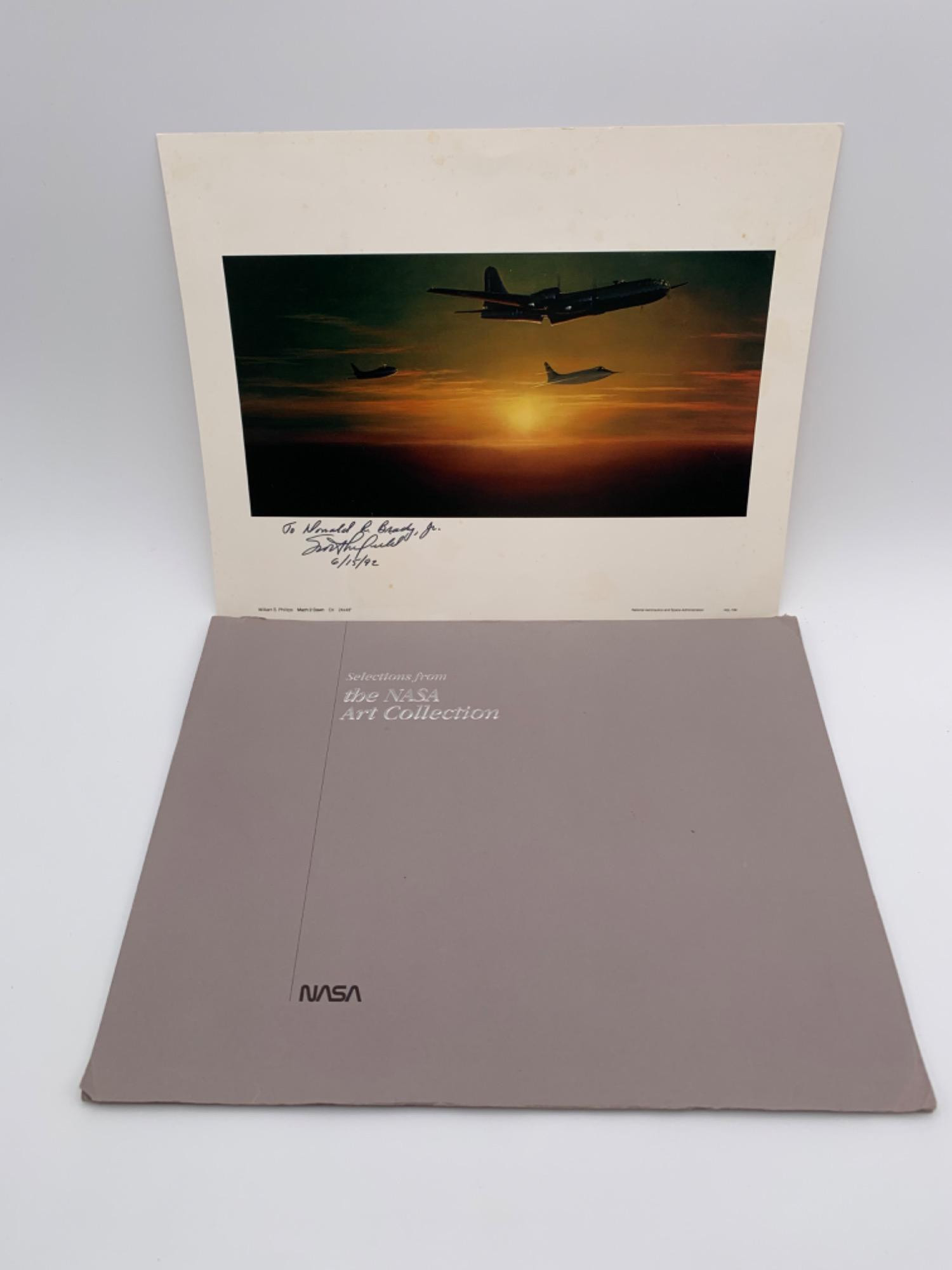 Scott Crossfield – X-15 test pilot & first man to fly at Mach 2 - signed photo print of Williams Phillips' painting “Mach 2 Dawn”. Inscribed by Crossfield “To Donald R. Brady, Jr. - Scott Crossfield 6/15/92”