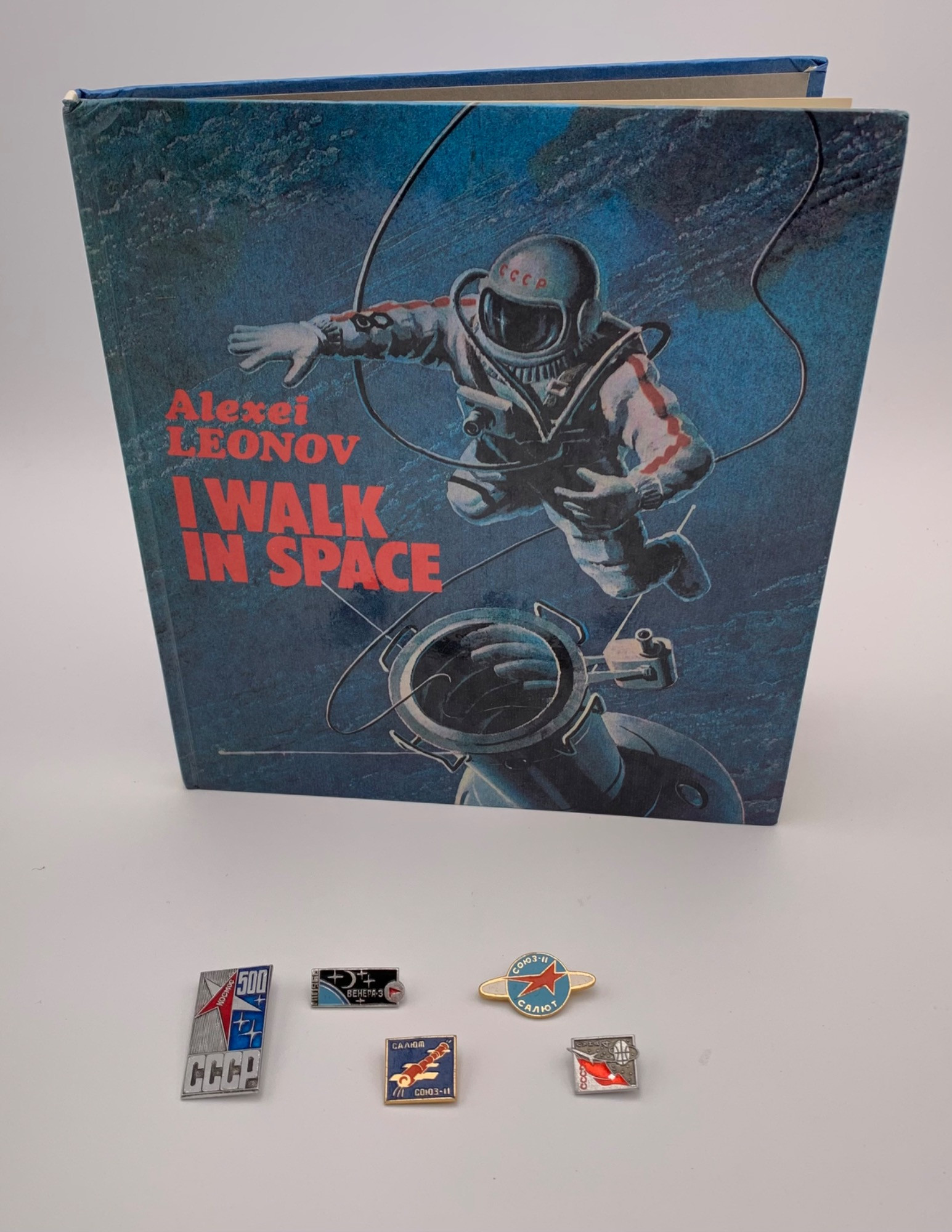 Lot # 77 - Book - I WALK IN SPACE - Cosmonaut Signed: Leonov + Soviet Pins