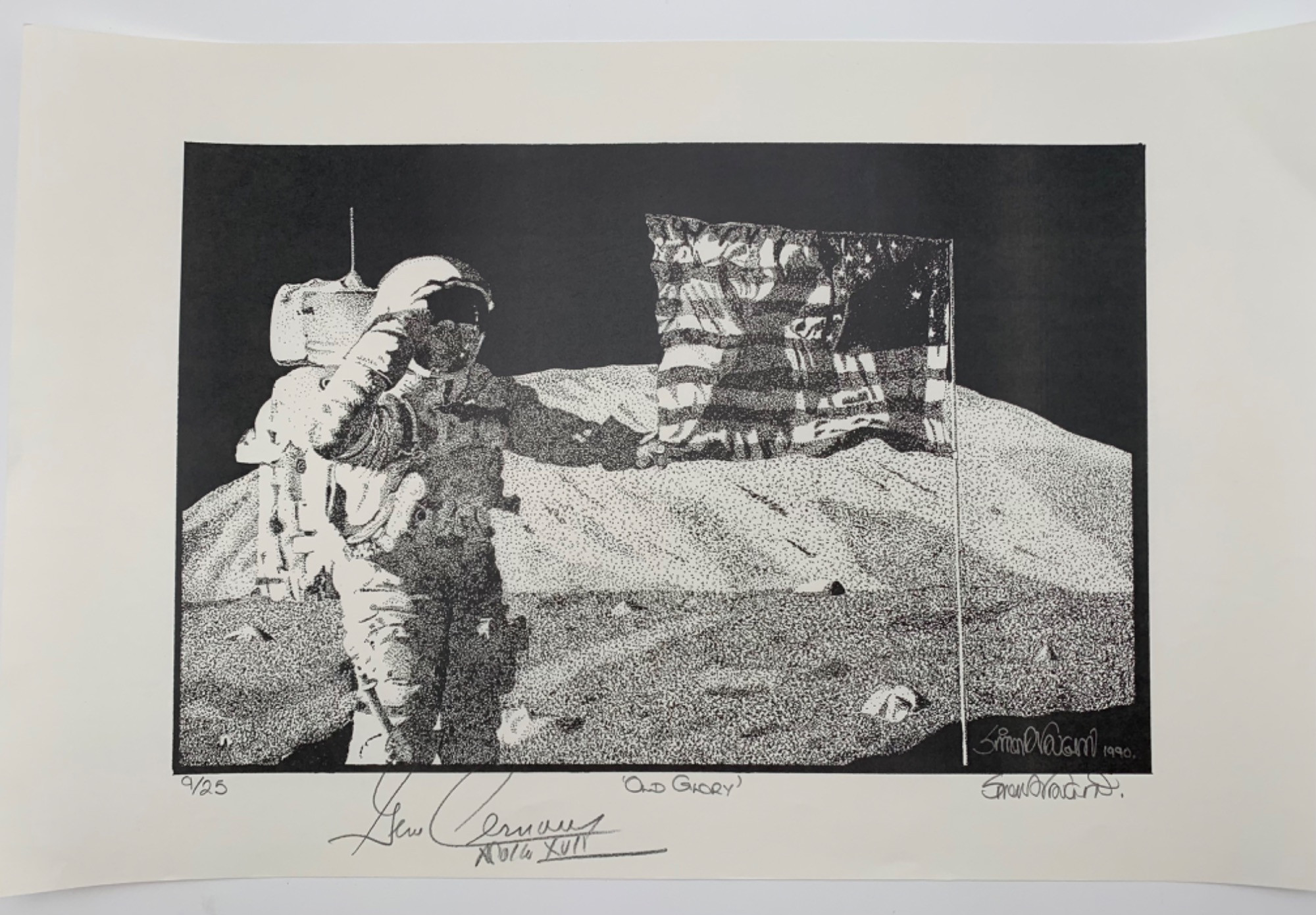 by Apollo 17 Commander Gene Cernan & artist Simon Vaughn. Image is of Cernan saluting the American