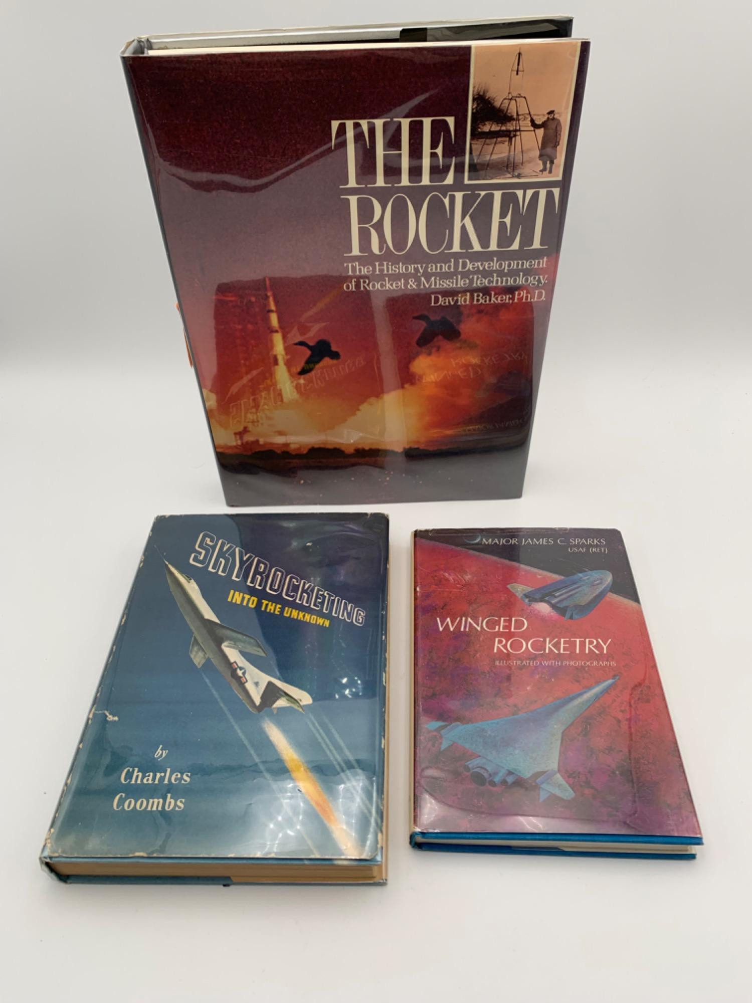 Trio of books focused on Rockets/missiles and lots of speed! Look closely at pictures to judge condition. WINGED ROCKETRY by Major James C Sparks. Hardcover