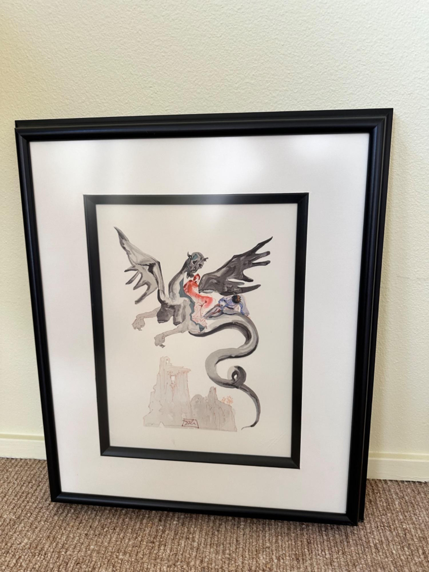 Artist: Salvador Dali. Medium: Original Color Woodcut on B.F.K. Rives Paper. Title: Inferno 17. Size 19.5 T x 16.5 W . Measures approx. 21" x 18" (framed). Certificate of Authenticity: Is included. Additional: Custom framed.