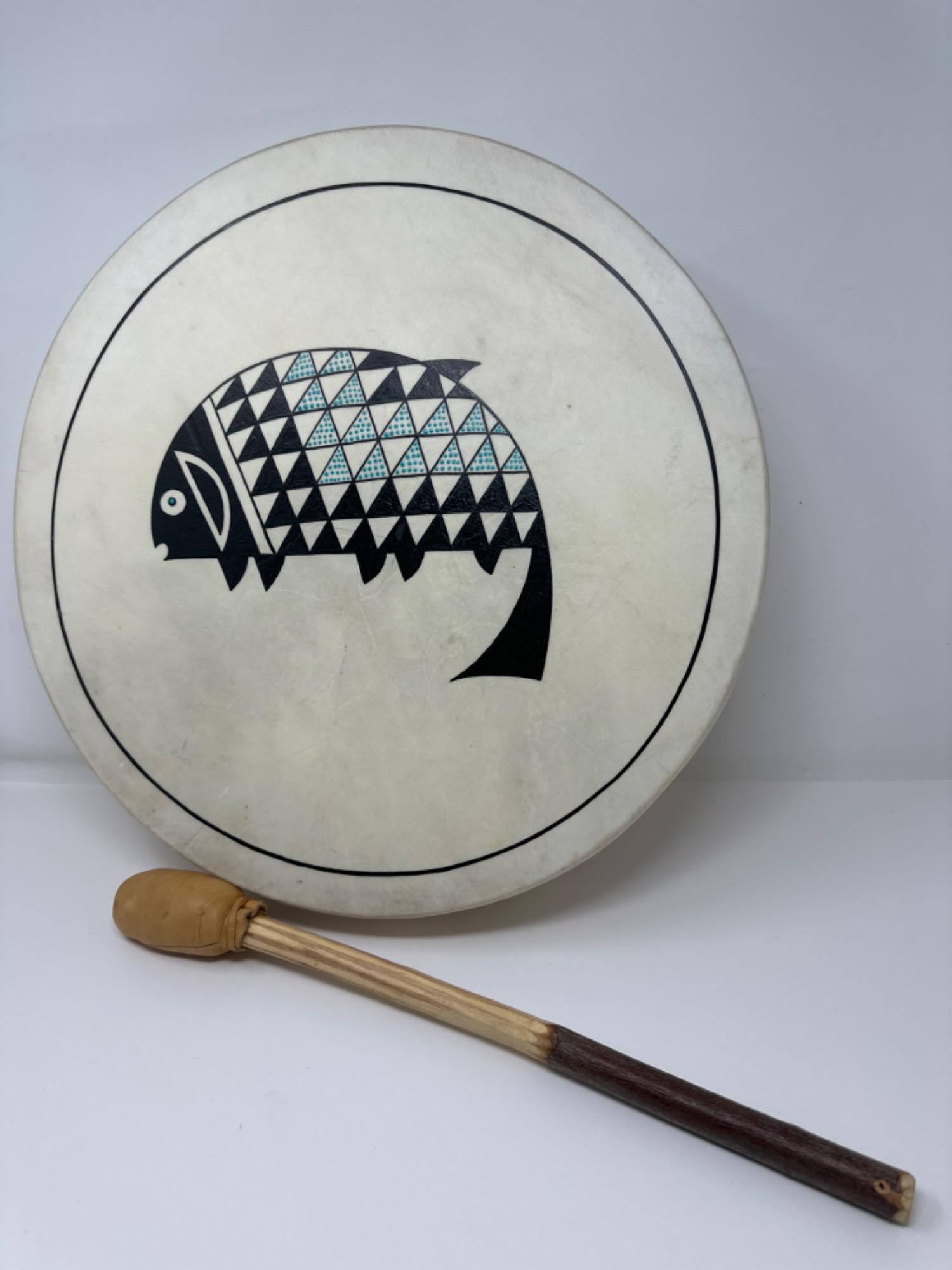 Paiute Rawhide Drum From Nevada 16.5 D Paid $500 originally The drum is much more than a musical instrument to Native Americans, It is sacred and is very special to the traditional way of life and is one of the most important things to our native people. The drum brings the heartbeat of our Mother Earth to the pow wow songs for all to feel and hear. The drumming and beat of the drum brings everyone back into balance.Whether dancing, singing, or just listening, people around the drum can connect with the Great Spirit. The Northern Paiute people are a Numic tribe that has traditionally lived in the Great Basin region of the United States in what is now eastern California, western Nevada, and southeast Oregon. The Northern Paiutes' pre-contact lifestyle was well adapted to the harsh desert environment in which they lived.
