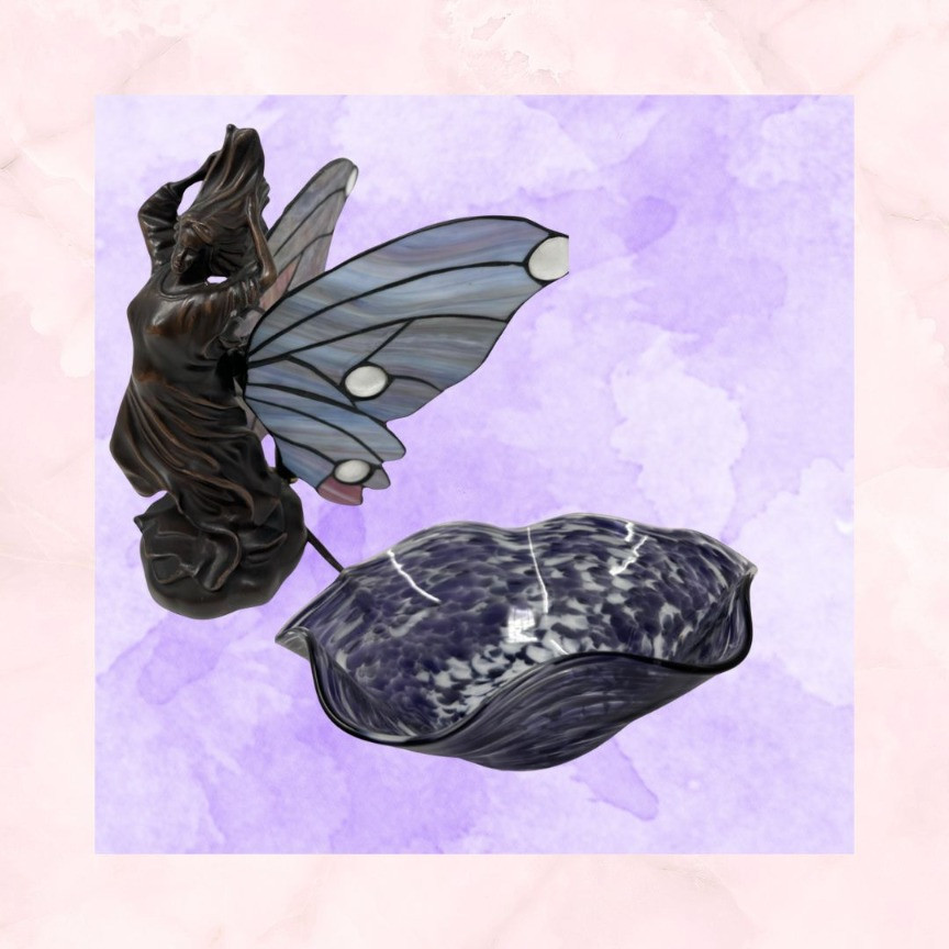 Lot # 14 - Art Noveux Lamp and Glass Purple Hand Blown Glass Bowl